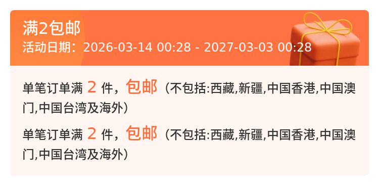 訂單達到免運條件後,運費將涵蓋關稅及5公斤以內包裹的基本運費。若包裹最終稱重超過5公斤,超重部分將依據集運倉運費計算公告(https://m.bcatlogistics.com/single?id=115)依照材積重量加收運費。客服人員將在收到加收運費通知後與您聯繫。若於收到收費通知D+5日內無法聯繫上您或未得到回覆,訂單將直接取消,包裹將進行逆物流退回廠商。此外,消費者需承擔大陸端的往返運費(約新台幣200至2000元不等)。若未支付逆物流費用,將無法進行退款作業。建議您在下單前先與商家客服確認運費預估金額。 - 「全球購折價券及運費折抵券,為消費者免費領取,視為附條件使用的優惠券,僅限訂單成功完成後生效。若因斷貨、缺貨等不可控因素導致訂單取消,折價券/運費折抵券因交易未成立而失效,恕不返還。消費者領取及使用本折價券,即視為同意相關活動規則及限制。」