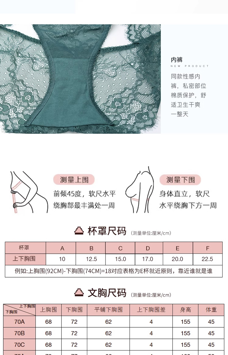 采用舒適性感蕾絲覆蓋著純色內衣猶如女神般誘人,蜿蜒的藤蔓花型無限蔓延,性感優雅,給自己或者另一半、閨蜜送一套都是很不錯的選擇哦!