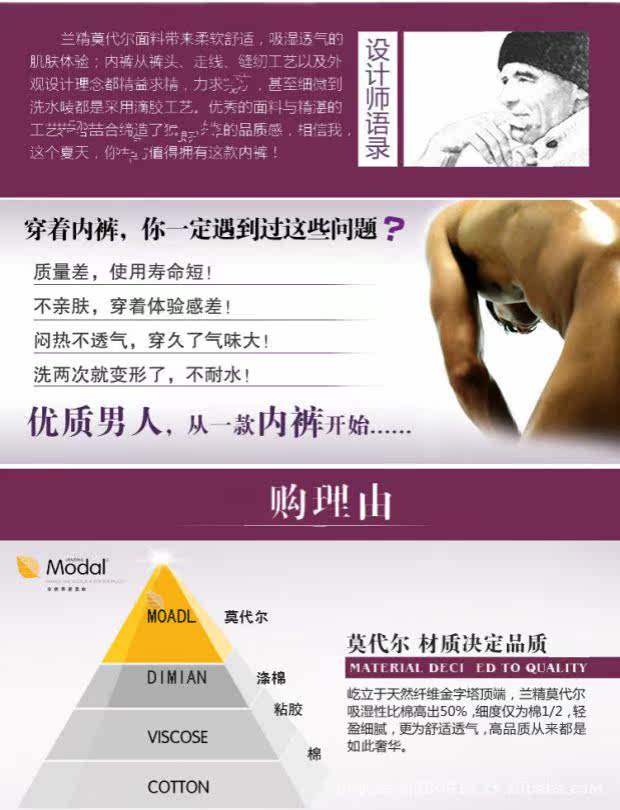 材質:再生纖維素纖維95%+5%氨綸品名:莫代爾U凸囊袋平角內褲 尺碼:L 26-29 2尺0-2尺2XL 30-32 2尺3-2尺5 XXL 32-35 2尺5-2尺8
