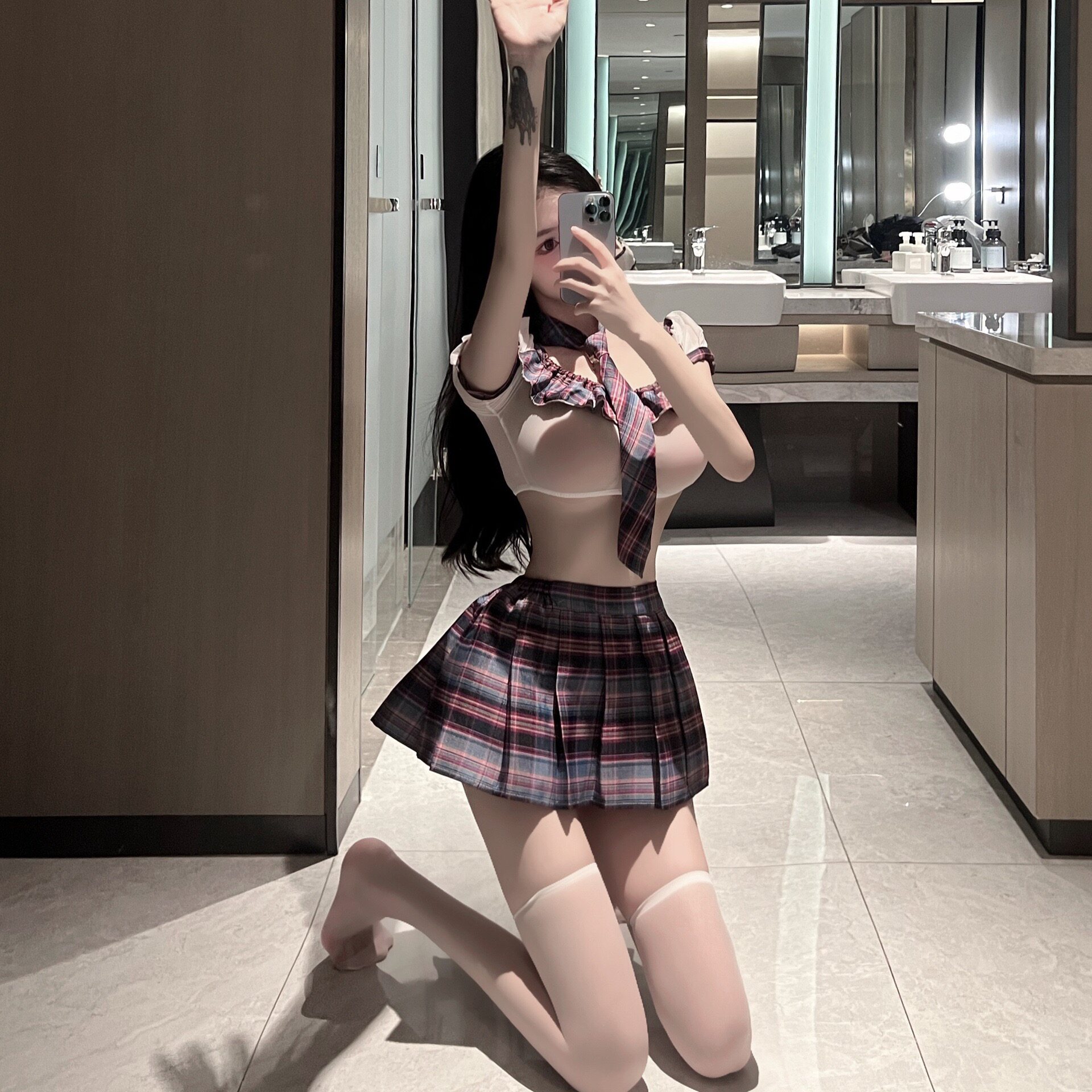 套裝:領帶+上衣+格裙+t褲(襪子額外選購)