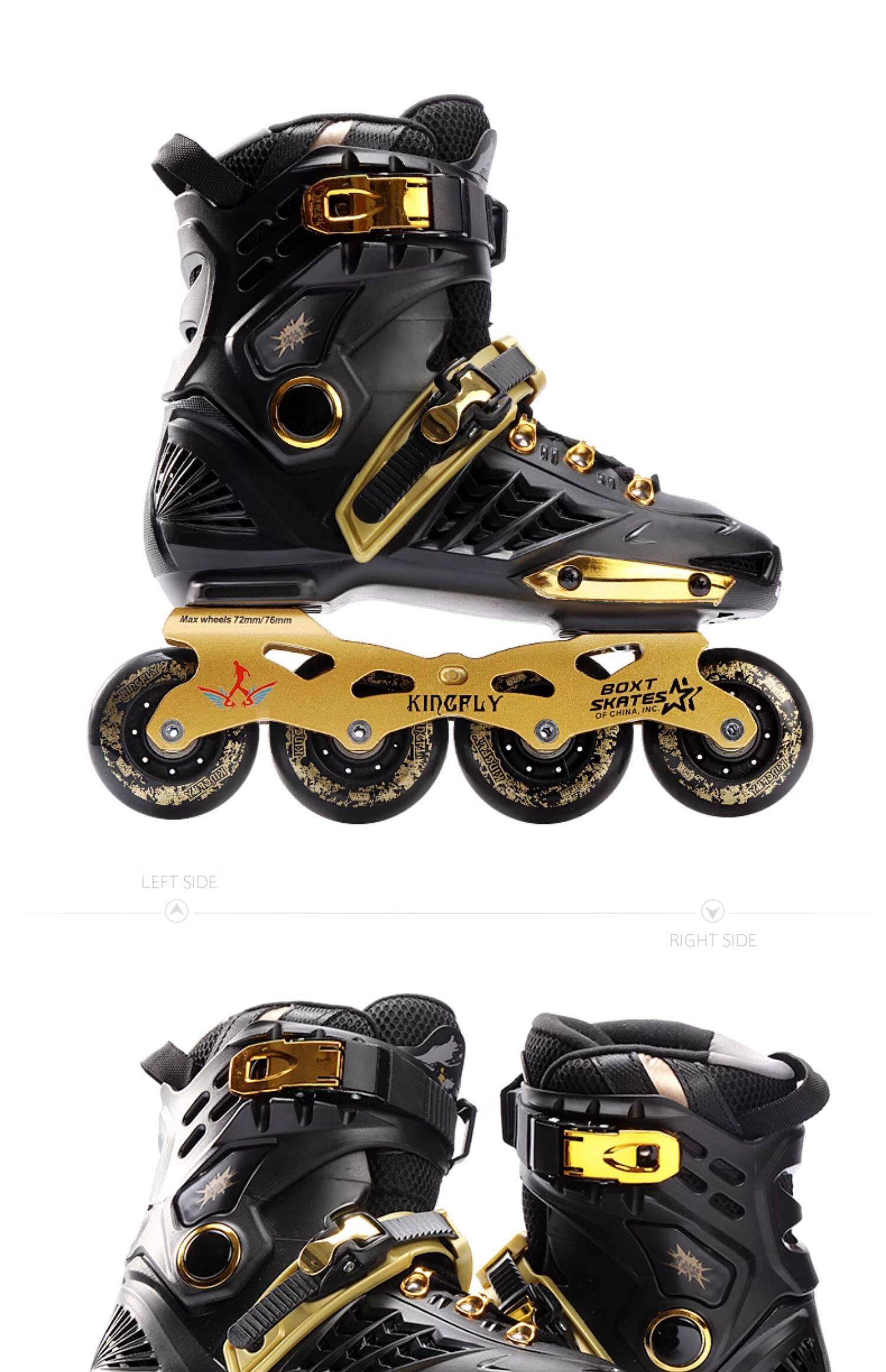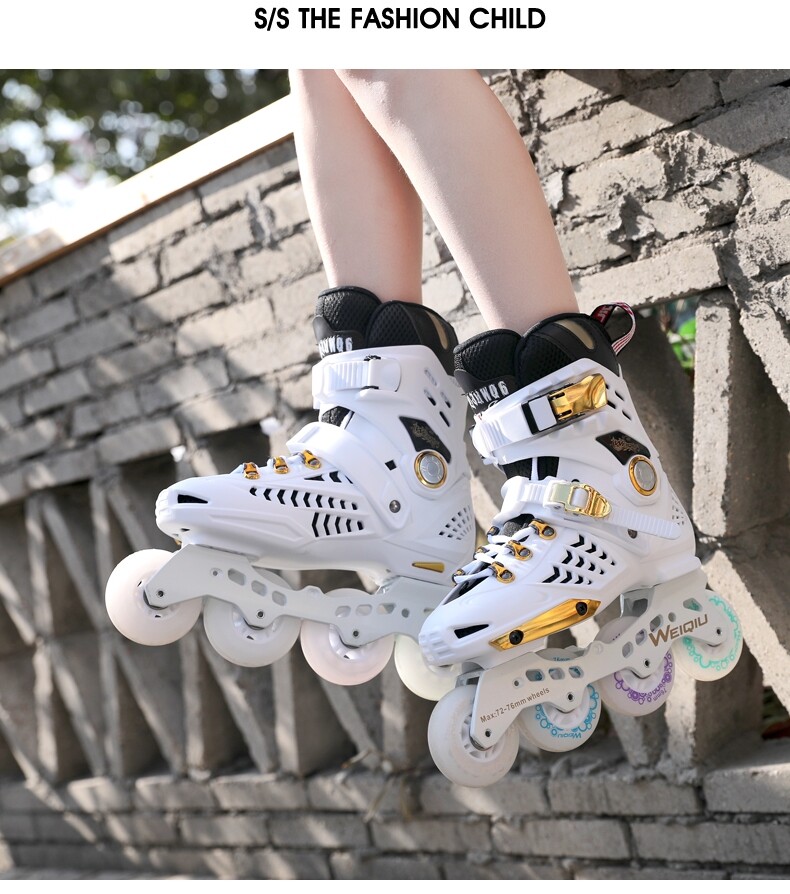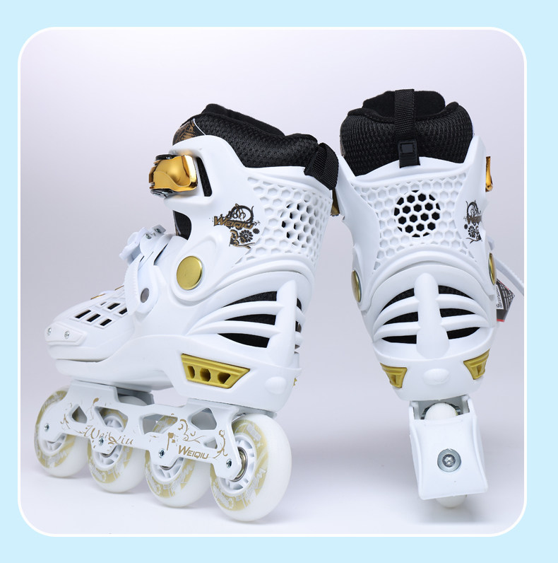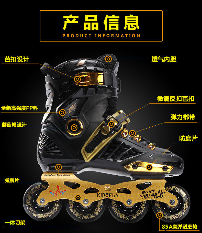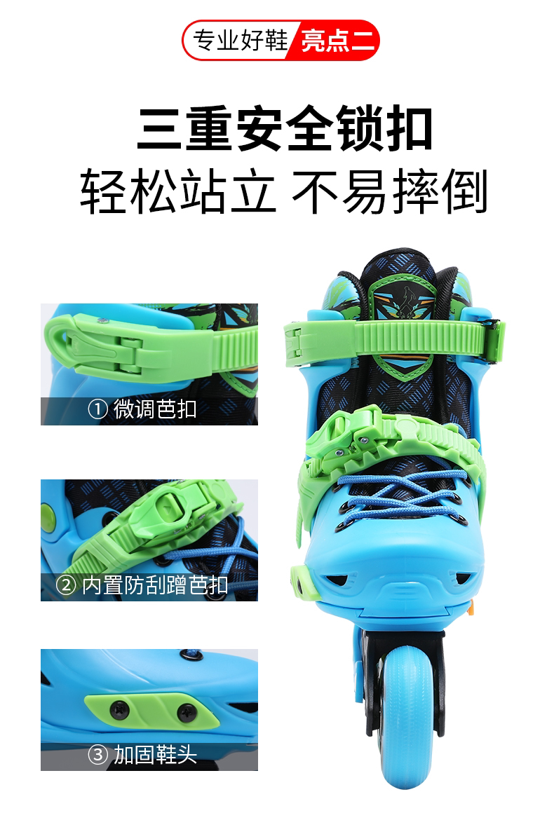 1.黑金可調款付款不閃發的是前輪閃光請知曉;2.專業平花培訓班和學校都有用可放心3.固定碼數的不能調大小,原裝沒有自帶剎車器需要剎車可以購買剎車安裝4.兒童款可調碼數的有帶剎車器,剎車器可拆卸5.全閃的輪子是乳白色的輪子,固定碼數的鞋子閃光的顏色默認四種顏色搭配可調碼數的鞋子閃光輪顏色是默認四輪炫彩