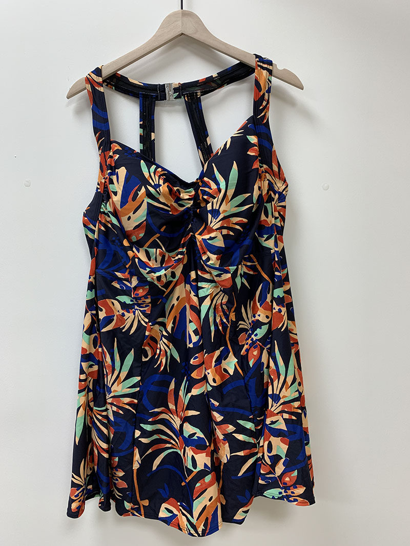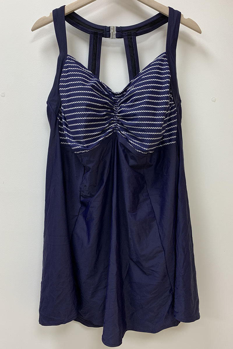 【規格描述】H背裙式泳衣(內含三角泳褲連一起不能拆),無鋼圈,有海綿墊(固定胸墊,不可拆取),大裙擺設計,顯瘦遮肚子,大部份有洗水標,無吊牌,材質:POLYAMIDE錦綸/POLYESTER滌綸/ ELASTANE彈性纖維
