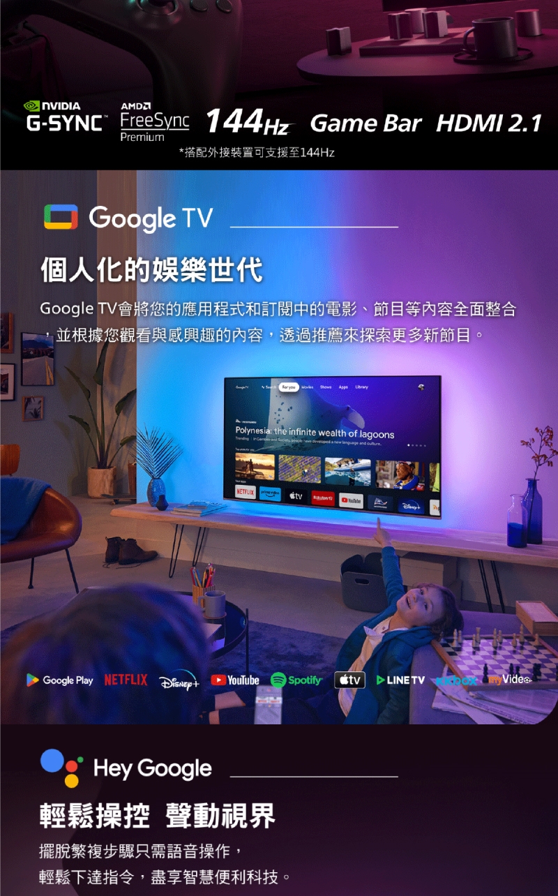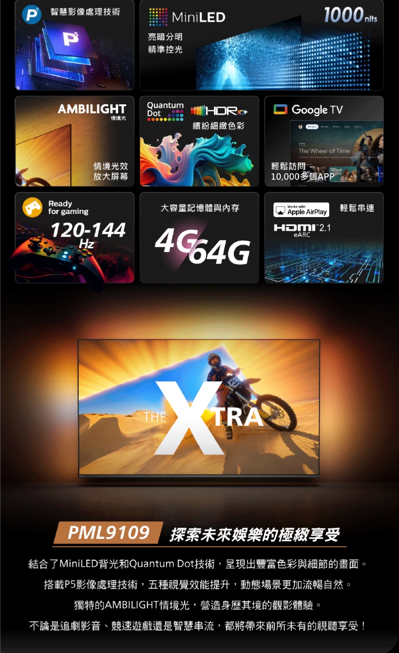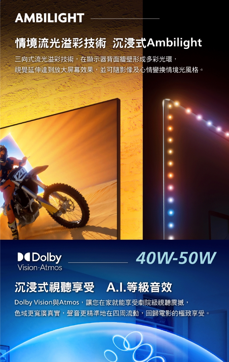 ★ 獨家Ambilight情境光技術,沉浸式觀影體驗