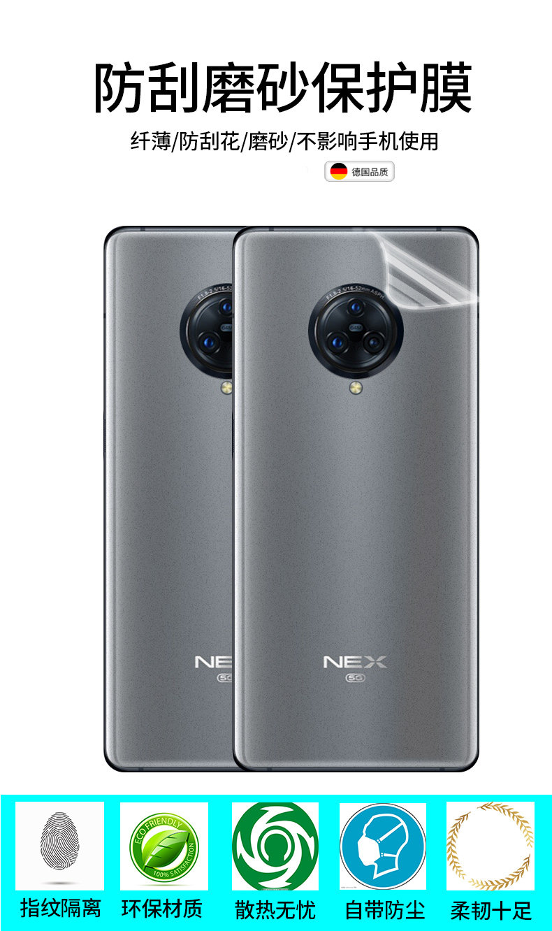 vivonex3磨砂后膜全包邊全覆蓋防指紋nex3手機膜防刮軟膜防手汗后蓋貼膜vivo曲面覆蓋無白邊透明水凝膜背膜