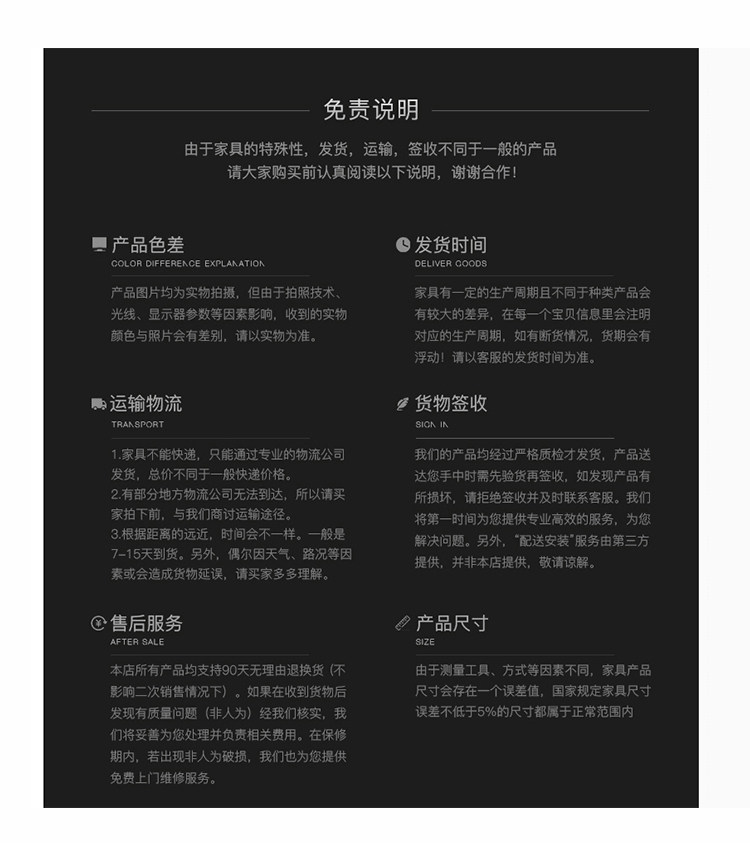 海關物流僅提供至指定地址1樓的配送服務,如要求配送至2樓(含)以上樓層,請提前與客服預約並支付額外費用。 - 家具類商品須知