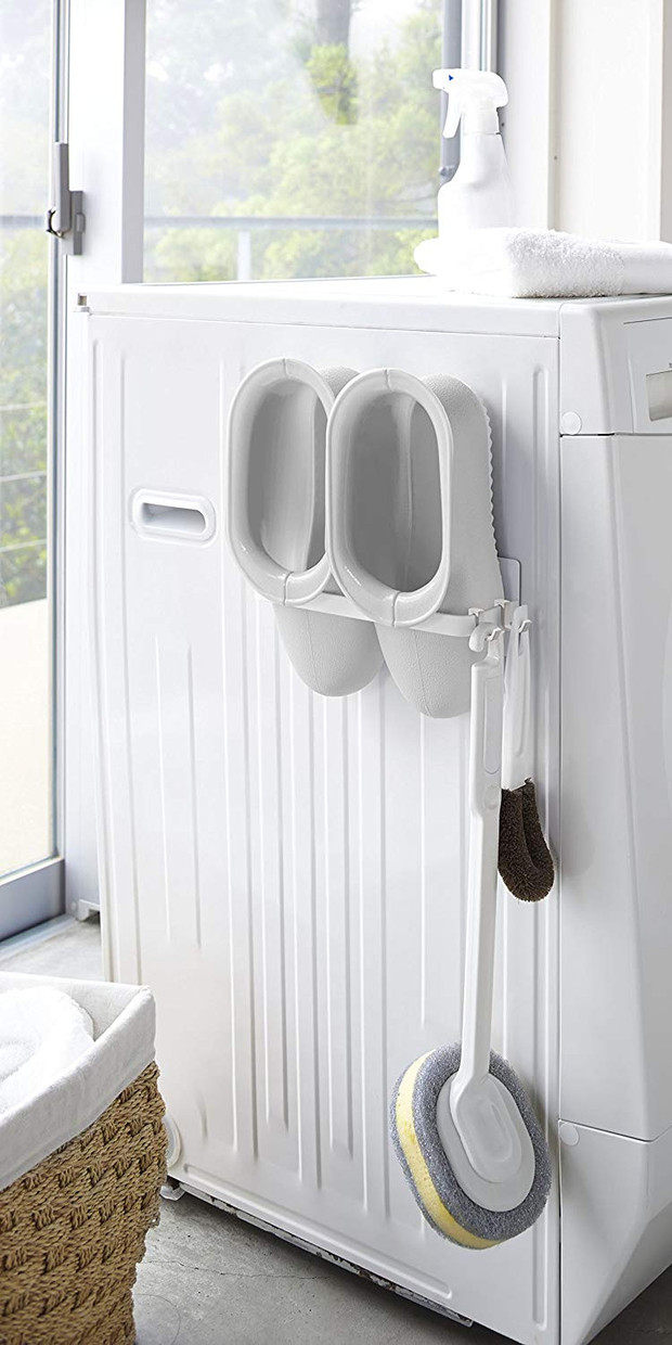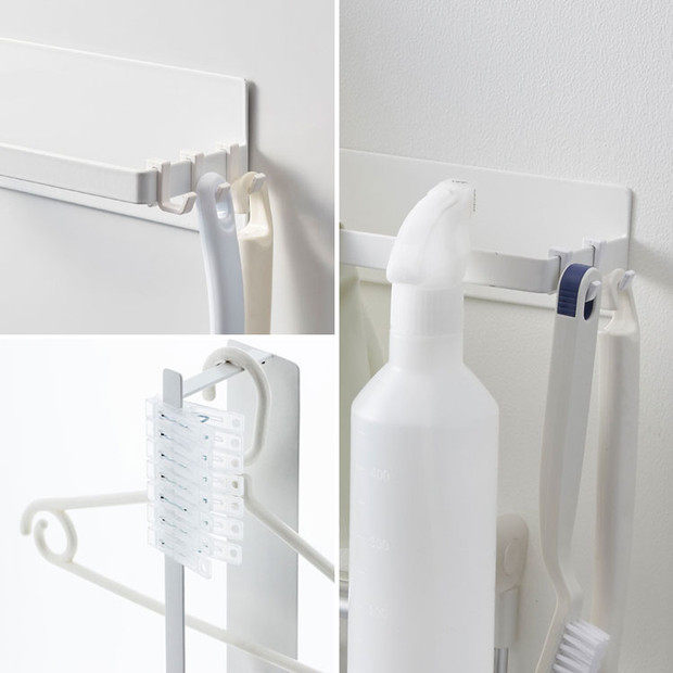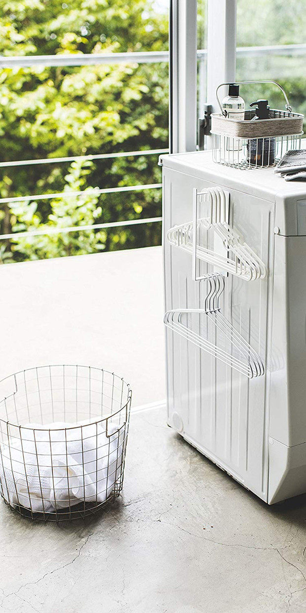 山崎商務練習磁鐵衣架收納洗衣機臥式洗衣架收納架塔S白3690