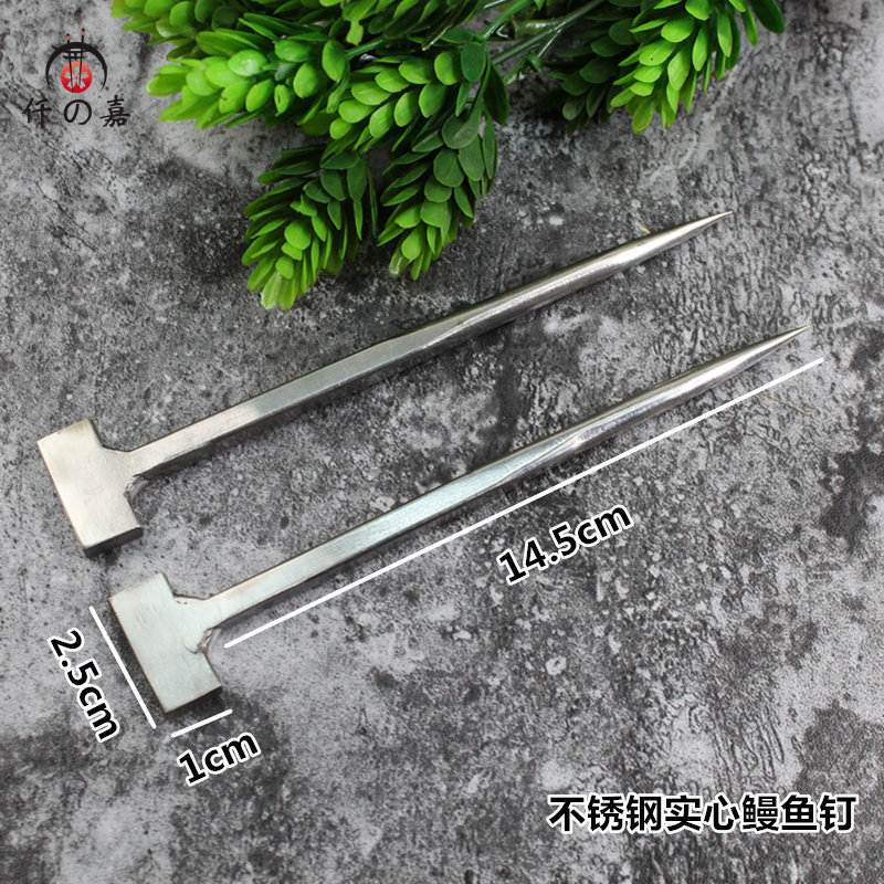 【產品特點】:本產品細長且厚實,釘頭尖細,是殺鰻魚的得力助手。