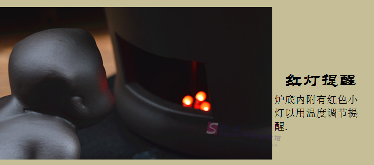 本產品功率500W,輕巧方便,節能省電,燒開一壺水時間在10到20分鐘左右(不同款的壺容量不一樣),需要快速燒開水的親慎拍哦!在匆匆的城市里,靜下心來,約上三五個知己,煮茶,品茶,體驗一下慢生活,讓心平靜下來,豈不愜意哉!本產品適合煮茶、煮花茶、煮咖啡、煮中藥,煮水泡茶......10多分鐘的煮茶時間是茶葉完全釋放的黃金時間段,陶壺煮出來的茶,茶味香濃,飽滿渾厚,水開了之后可以調小功率,繼續慢火煮,使茶味的香氣完全釋放出來,好茶更需要有一個好爐,一把好壺,才能讓茶味釋放出來,把茶的特點體現出來。