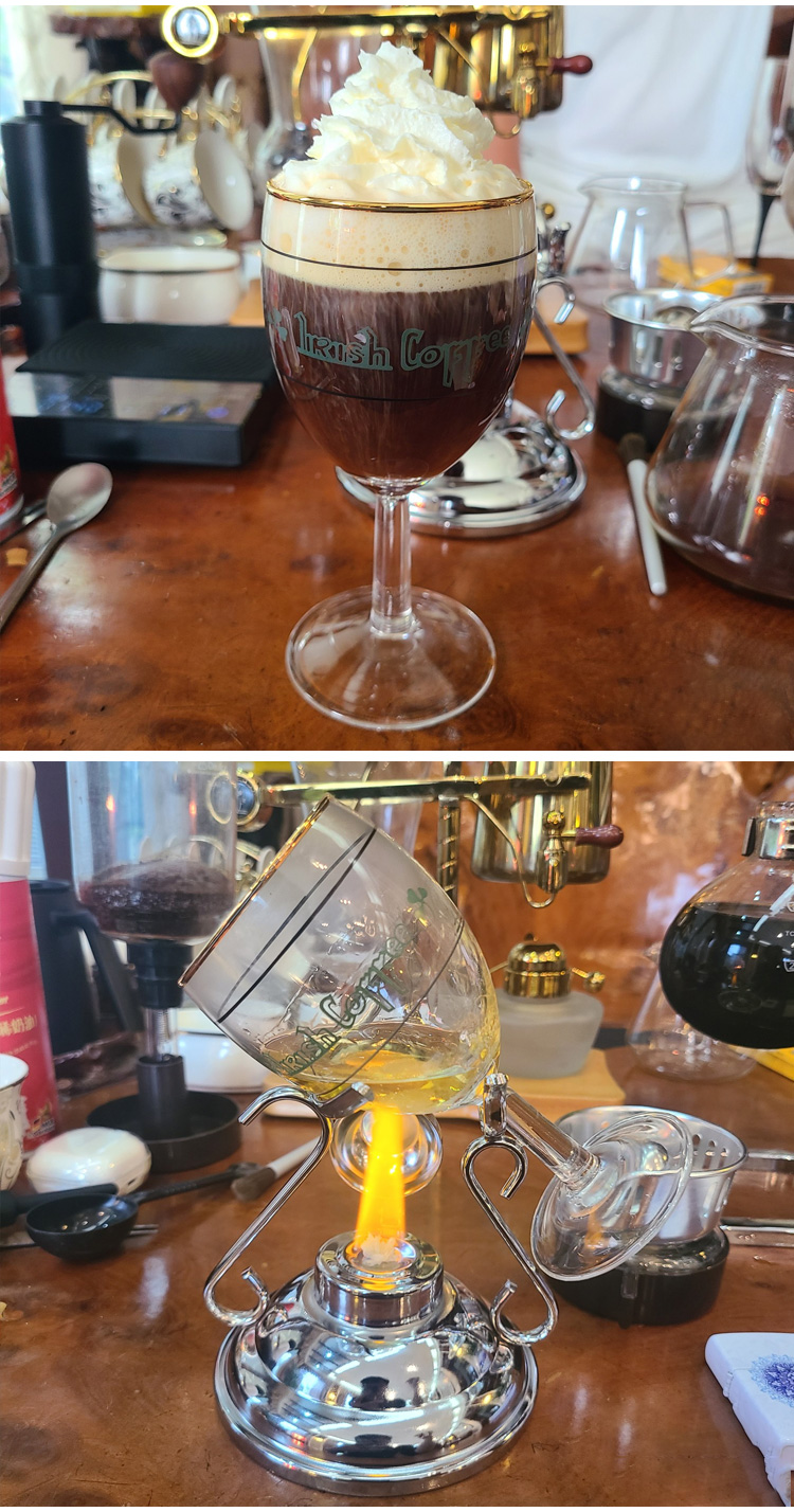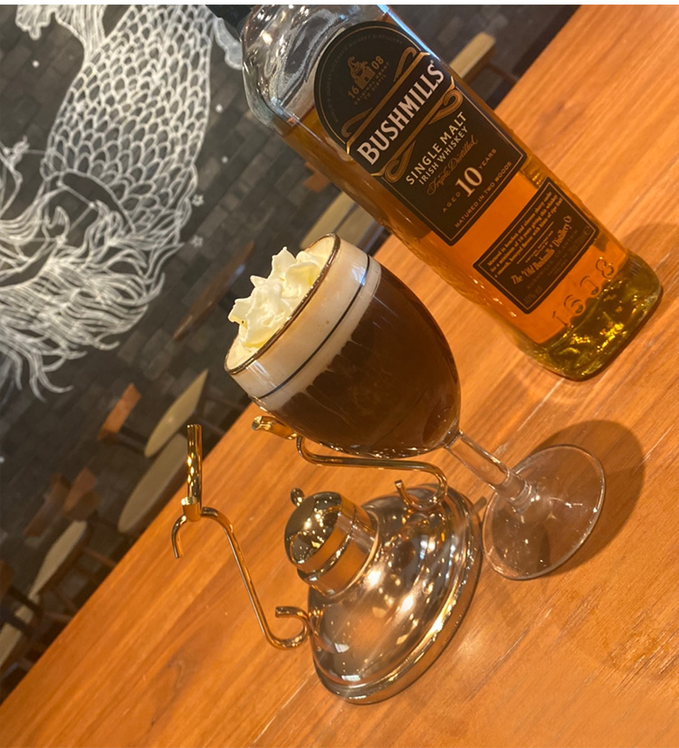 、完成烤杯後,將咖啡到入愛爾蘭咖啡杯