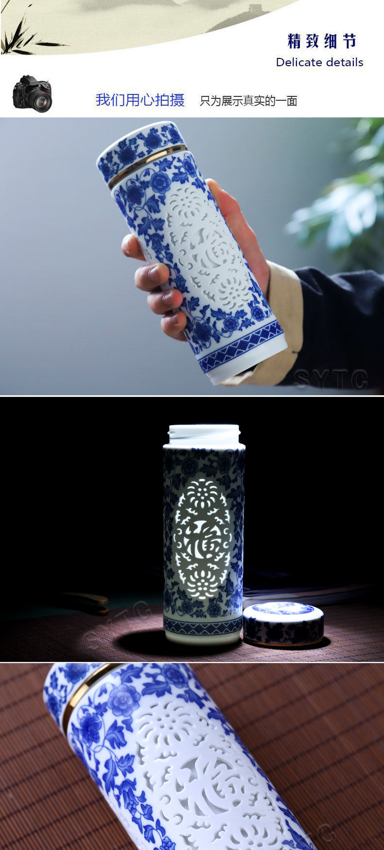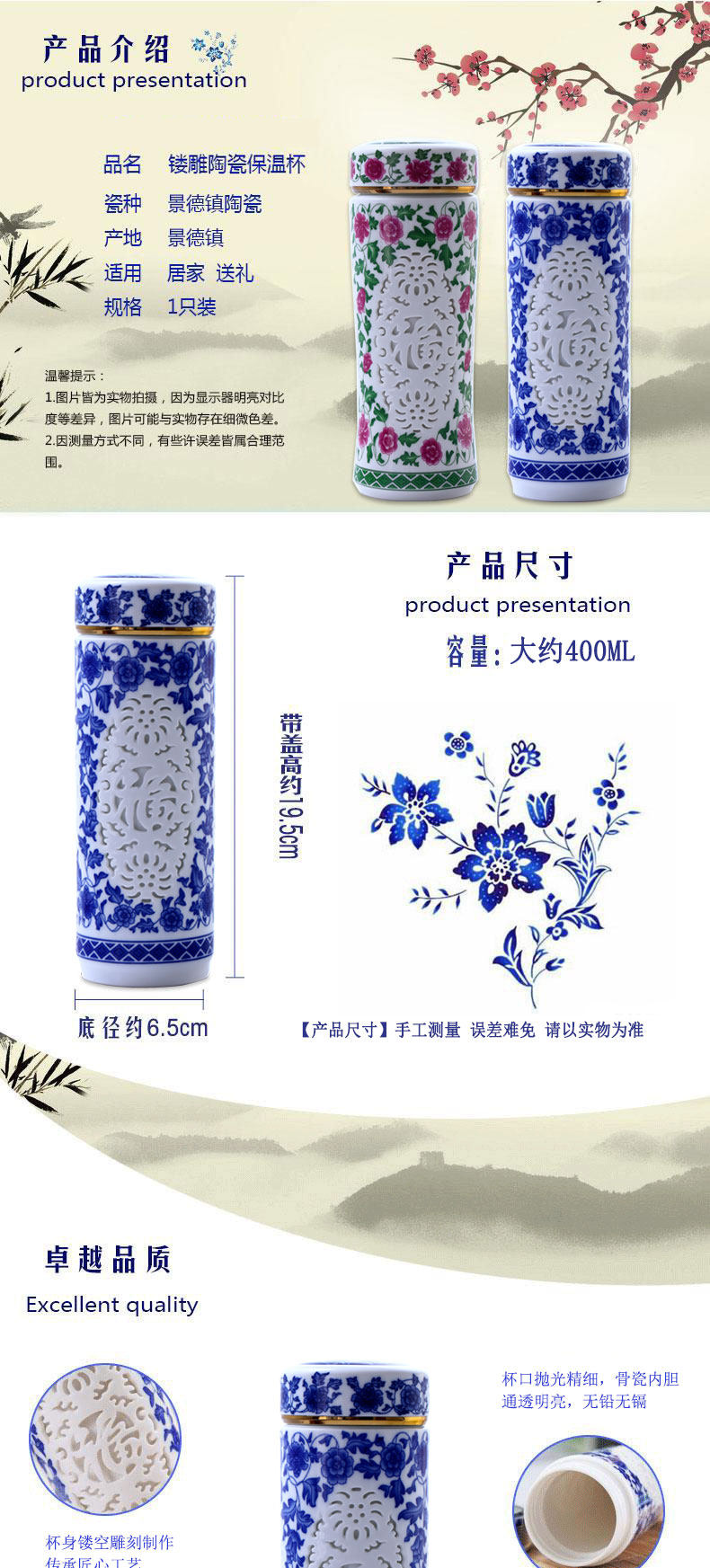 【產品名稱】:景德鎮陶瓷鏤空保溫杯
