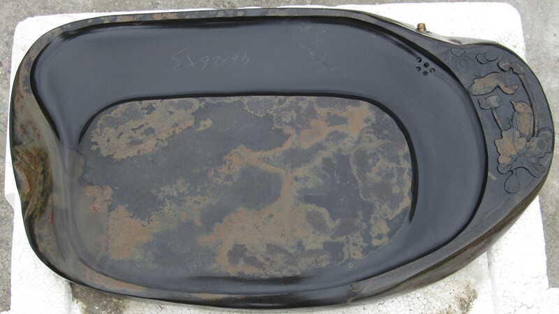 如果說你拿到手的是油質的就可以先用溫清水洗去油質﹝如果說清洗有困難時可以少量用一點洗潔精﹞,用刷子洗一番,再換過清水洗凈后,放在通風處晾干,使用前還是要在石茶盤外圍再次上橄欖油進行養護﹝ 注:在石茶盤上平面和石茶盤內不可以再使用橄欖油養了,因為那樣會對你的紫砂茶壺的養護帶來不利。﹞。 做好上面的準備后,使用時只要先用沸水沖過就可以了﹝ 不過等到石茶盤外圍的油干透后,以后要對外圍進行定期的上油養護﹞。如果說是清水貨那還是要上一次油的﹝ 注:油是上面所提到的橄欖油﹞, 等到干透后就可以跟上面養護油質石茶盤的方法一樣養護了。