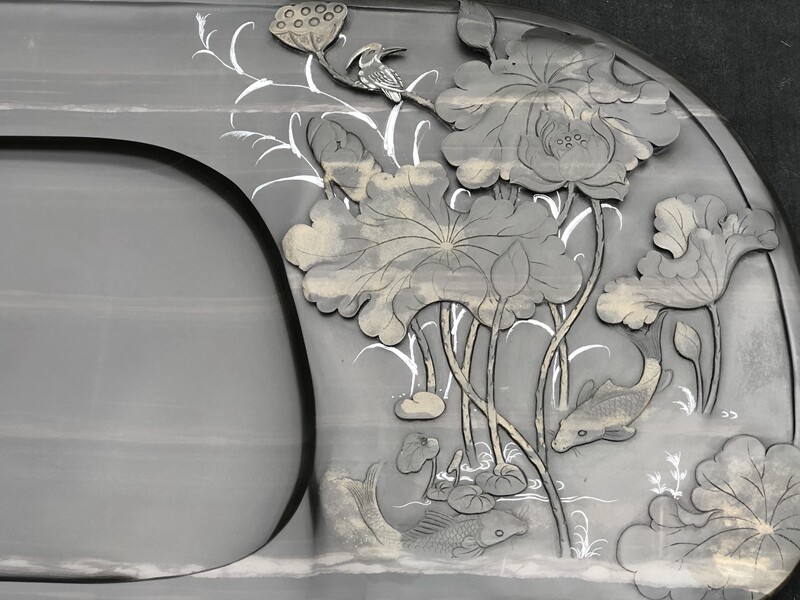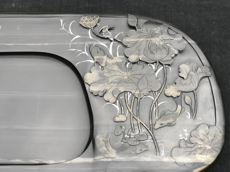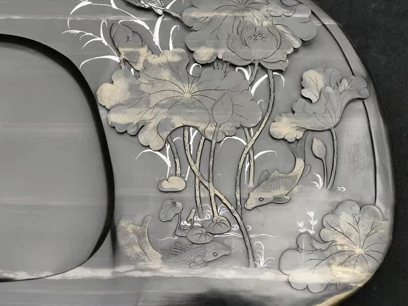 歙硯的石質堅潤如玉,外表為黑色,其嫩而堅,潤而不滑,扣之有聲,撫之若膚,磨之如鋒,紋理燦爛,歙硯雕琢采用傳統的徽派雕刻,工藝古樸雅潔,其