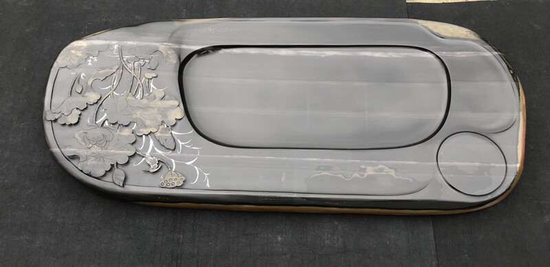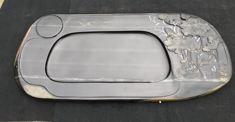 天然硯石茶盤材料,是大自然天然而成,主體顏色天然渾成,未經人為加色,天然石質的色為本色和混色,由于天然的石頭是經過大自然的造化而成,無論色彩還是質地,人工合成都是無法仿冒的,硯石材料本意是用來選做硯為上,由于當代近時間,市場大眾興起以硯石高檔材料為基礎上,以硯石材料為基本,發揮硯臺手工藝的技術創造,結合而生產的高檔茶盤,能用既能收藏。