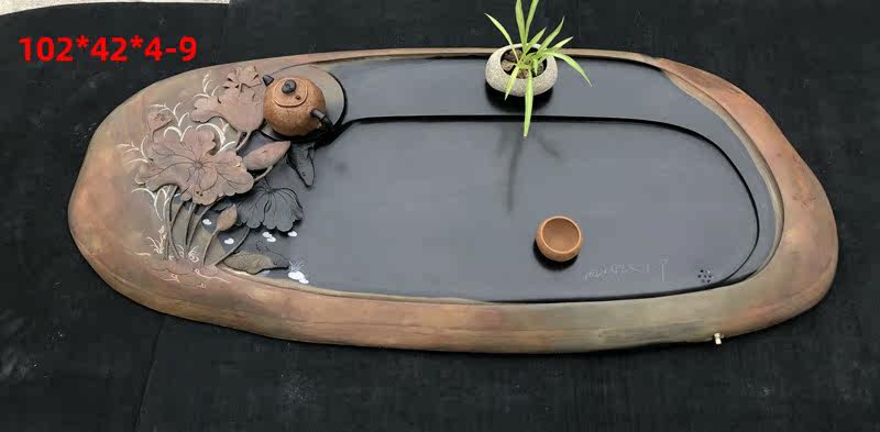 從茶盤的使用性能上看,木質和竹質茶盤均處于劣勢,使用年限不長,容易干裂變形,積茶垢不易清洗,且有異味。金屬茶盤,雖材質可靠,外表光亮,不易吸水不變形等優點,但其材質決定了它在工藝上和外觀上的單調性,千篇一律。在視覺上的美感欠佳,與中國獨有的茶文化格格不入。