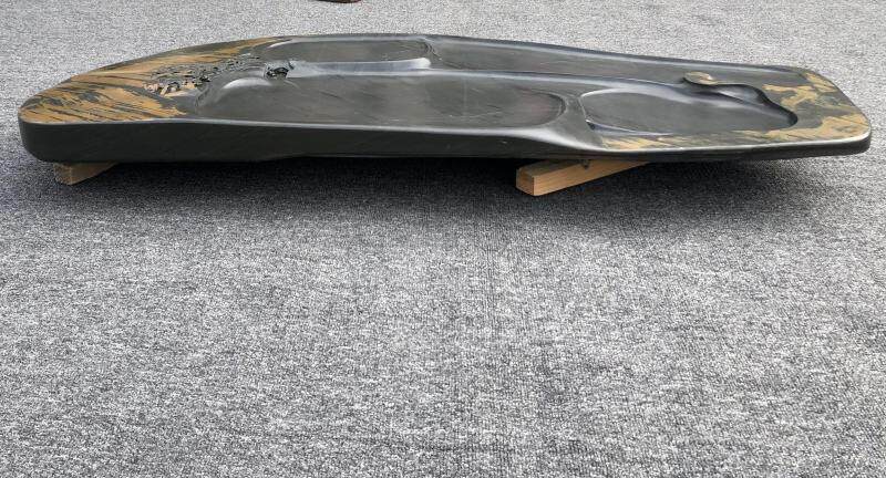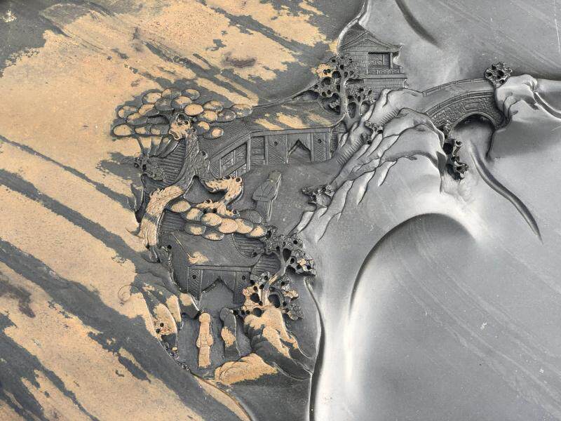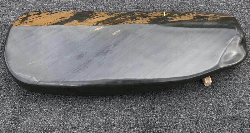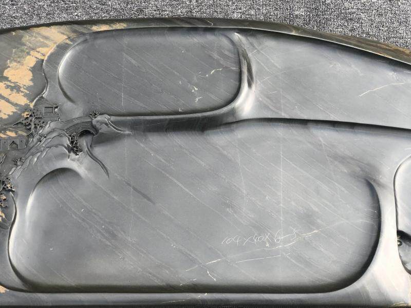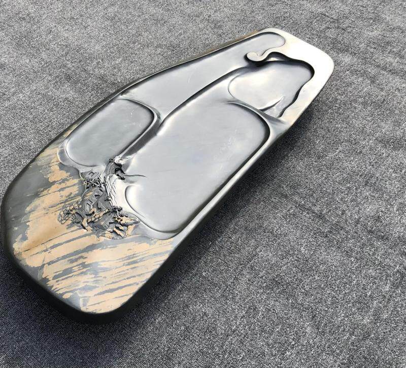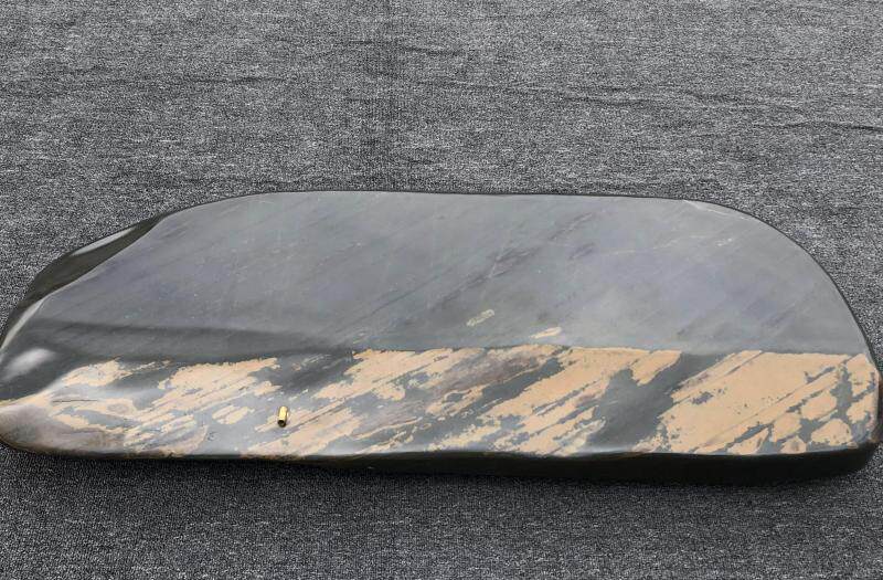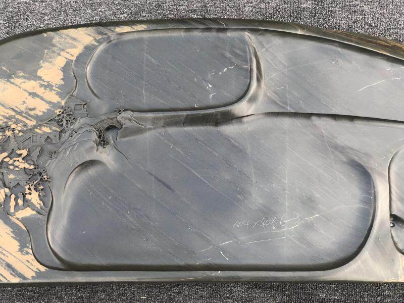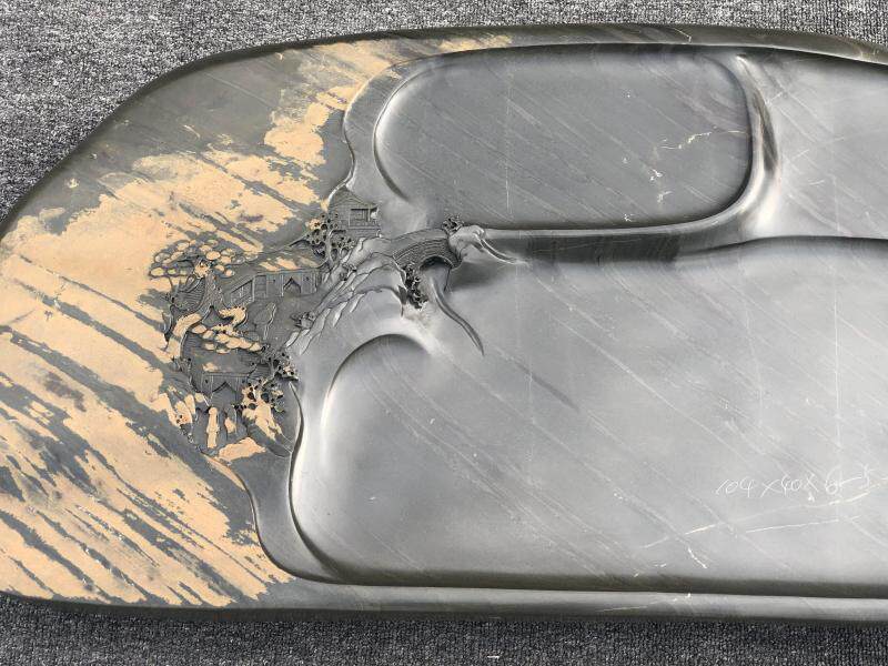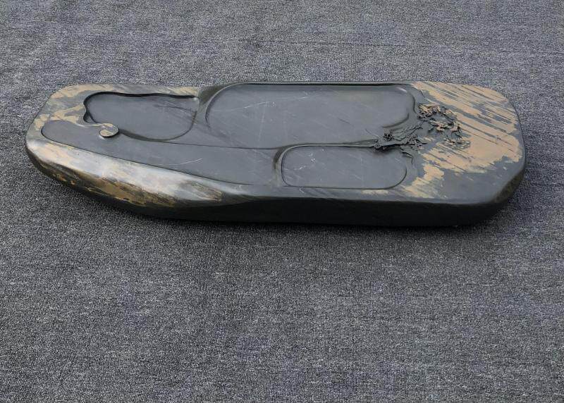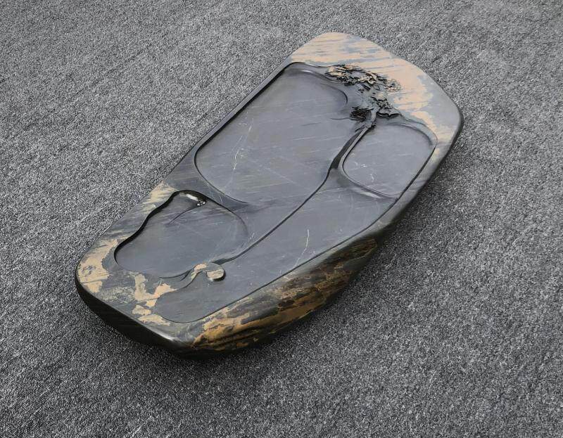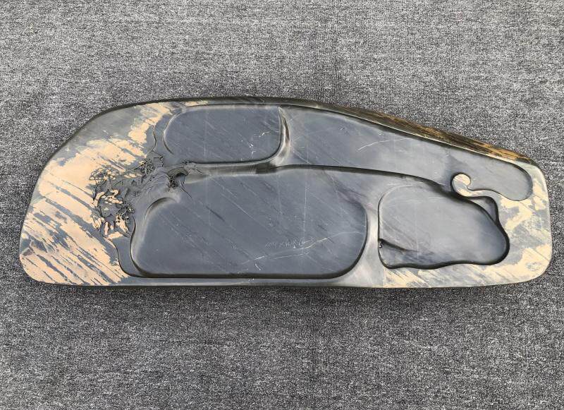 天然硯石茶盤材料,是大自然的天然而成,主體顏色天然渾成,未經人為加色,天然石質的色為本色和混色,由于天然的石頭是經過大自然的造化而成,無論色彩還是質地,人工合成都是無法仿冒的,硯石材料本意是用來選做硯為上,由于當代近時間,市場大眾興起以硯石高檔材料為基礎上,以硯石材料,發揮硯臺工藝的技術創造,而生產的高檔茶盤,能用既能收藏。