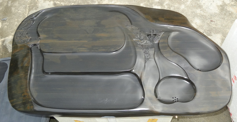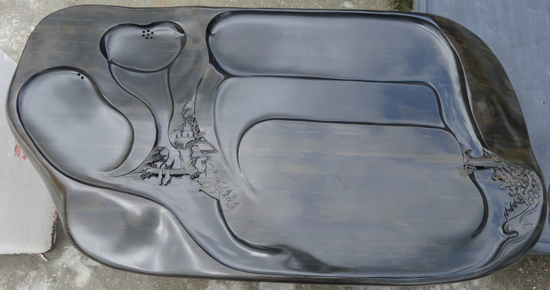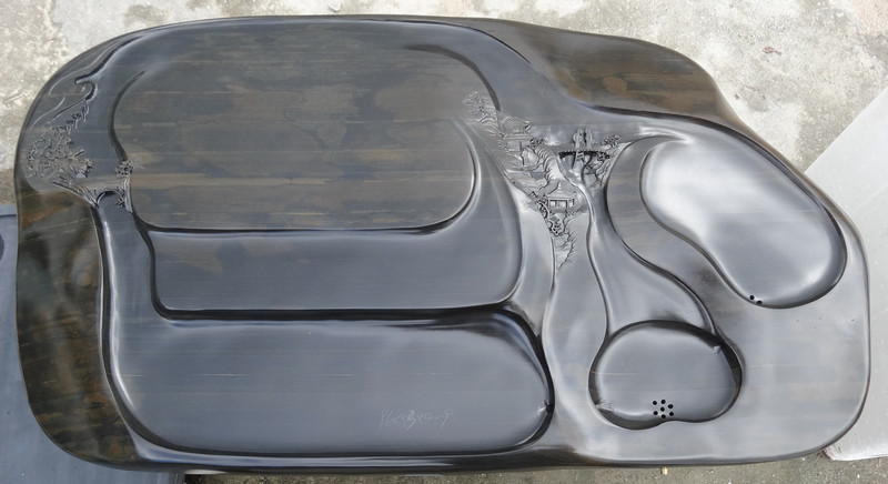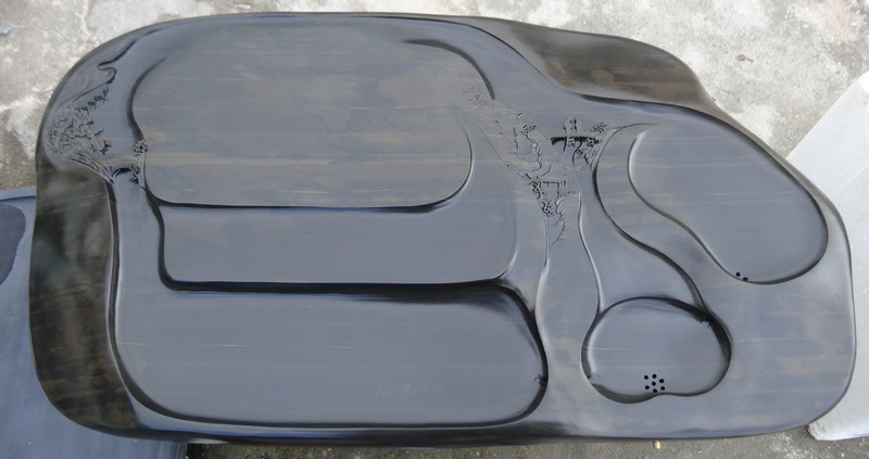 用歙硯石制作的茶盤,其獨特材質不但具有遇冷遇熱不干裂不變形,不褪色,不生異味,不易沾茶垢,易清洗等優點,而且外觀美觀大方,別致典雅。同時,還富有中國傳統文化內涵,體現中國茶文化之獨特.通過獨具匠心的雕琢,更讓其在藝術欣賞與現實使用上取得一個的結合