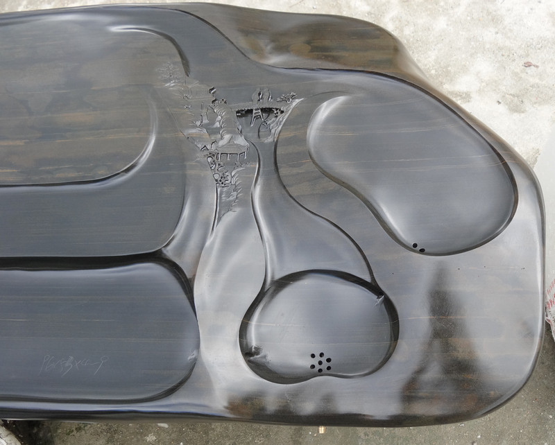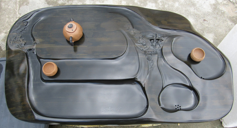 從茶盤的使用性能上看,木質和竹質茶盤均處于劣勢,使用年限不長,容易干裂變形,積茶垢不易清洗,且有異味。金屬茶盤,雖材質可靠,外表光亮,不易吸水不變形等優點,但其材質決定了它在工藝上和外觀上的單調性,千篇一律。在視覺上的美感欠佳,與中國的茶文化格格不入。