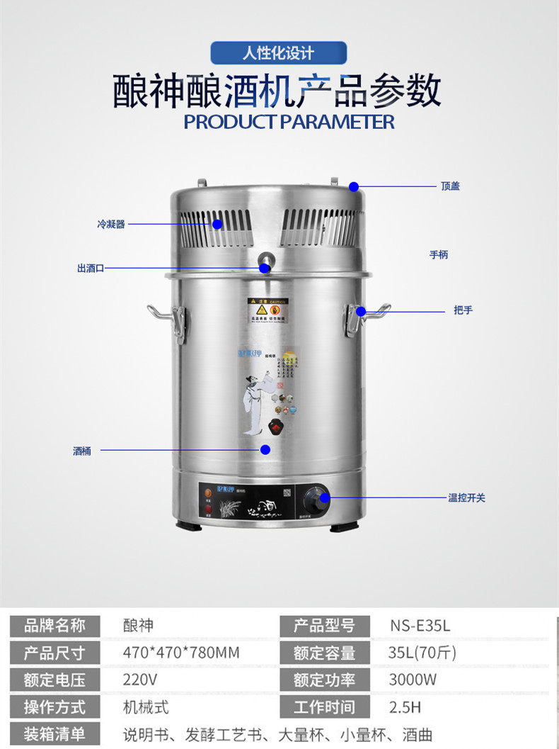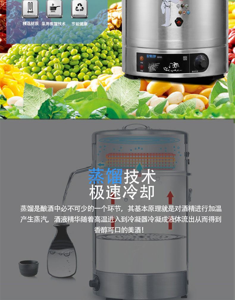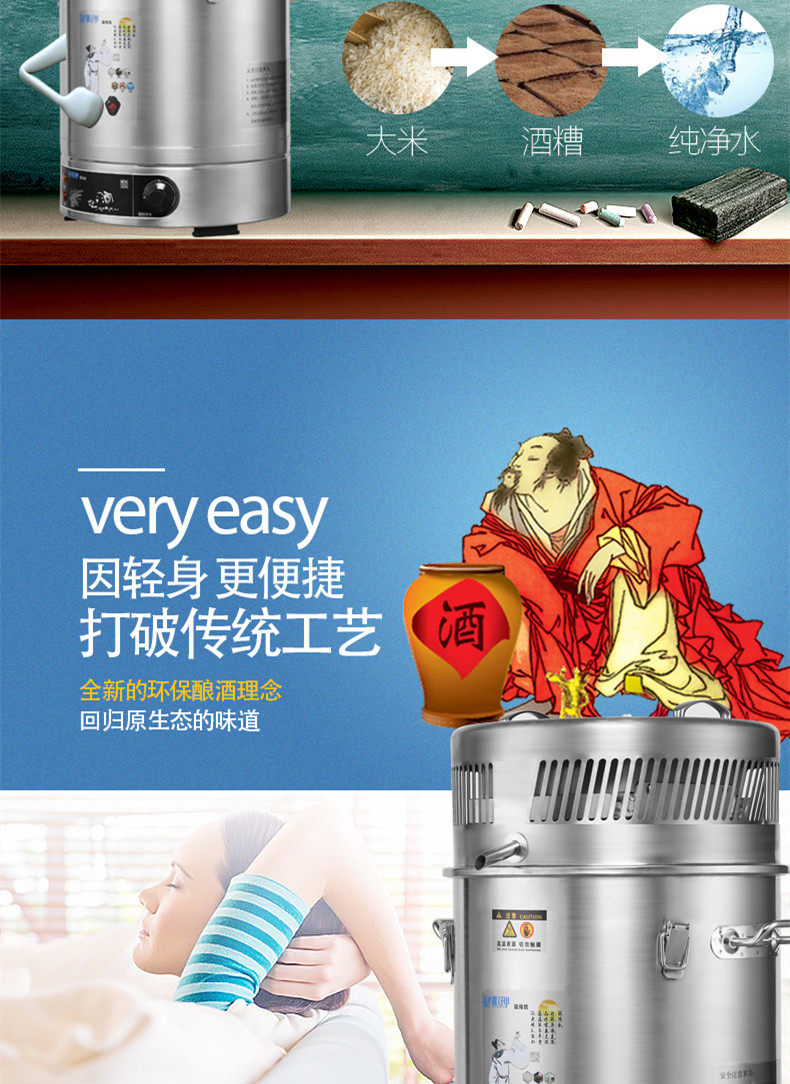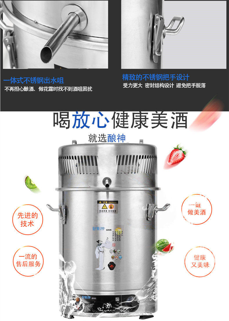 釀酒機全新升級,全場優惠大派送。拍下釀酒大禮相送 蒸盤1個、酒糟袋1個、酒曲150克 、酒度計1支、接酒杯1只、酒曲量杯1只、酒類發酵工藝書一本,120升、150升不配送蒸盤