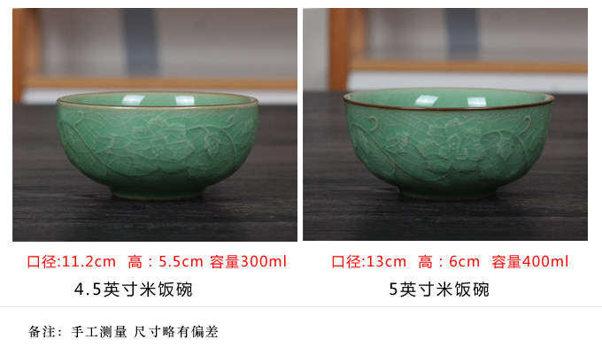 商品名稱:纏枝牡丹哥窯碗禮盒裝產地:浙江 龍泉材質:瓷工藝:弟窯規格:詳見尺寸標注容量:300ml 400ml顏色:哥窯梅子青包裝:禮盒包裝