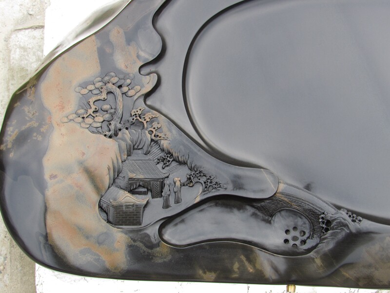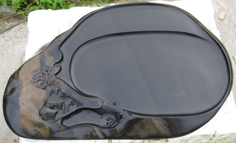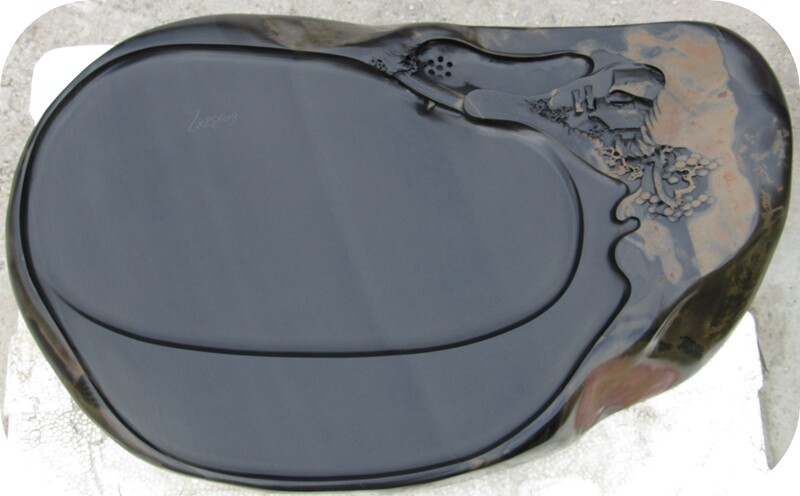 歙硯的石質堅潤如玉,外表為黑色,其嫩而堅,潤而不滑,扣之有聲,撫之若膚,磨之如鋒,紋理燦爛,歙硯雕琢采用傳統的徽派雕刻,工藝古樸雅潔,其