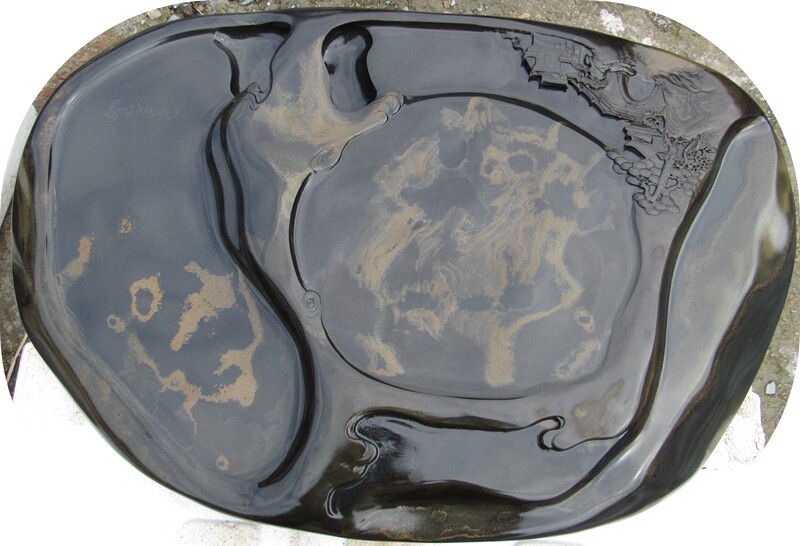 從茶盤的使用性能上看,木質和竹質茶盤均處于劣勢,使用年限不長,容易干裂變形,積茶垢不易清洗,且有異味。金屬茶盤,雖材質可靠,外表光亮,不易吸水不變形等優點,但其材質決定了它在工藝上和外觀上的單調性,千篇一律。在視覺上的美感欠佳,與中國獨有的茶文化格格不入。