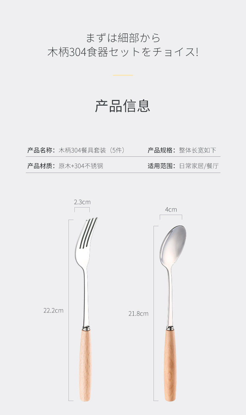 3. 不銹鋼部分都是304不銹鋼材料,木手柄都是原木材料