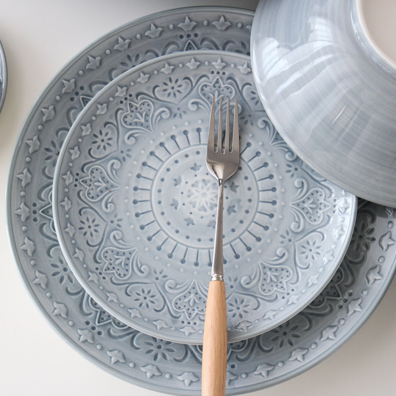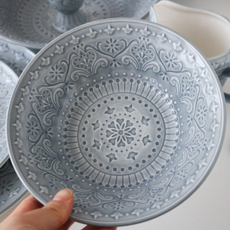 可以微波爐,可以洗碗機,手繪釉下彩,浮雕紋理,顏色也是很美麗。