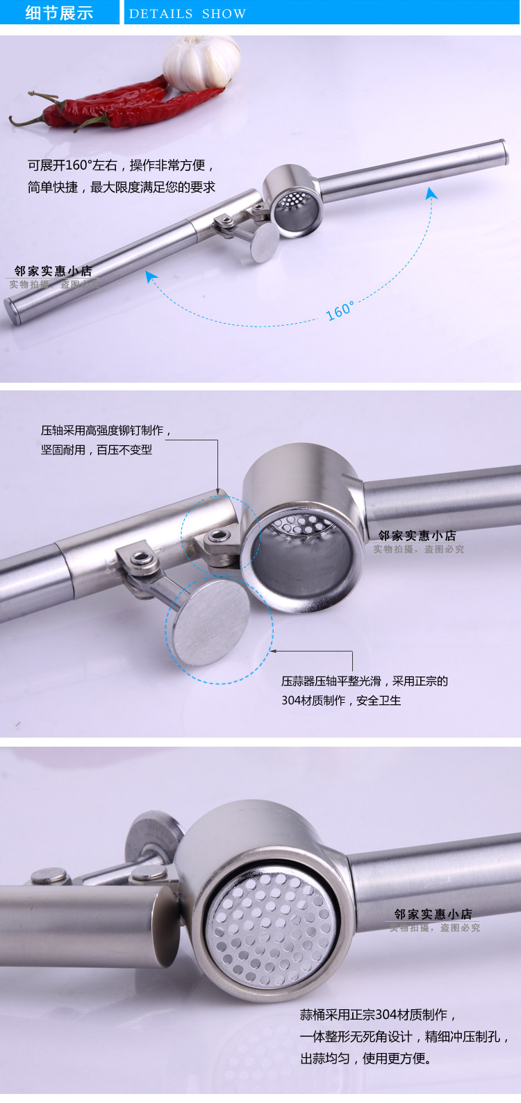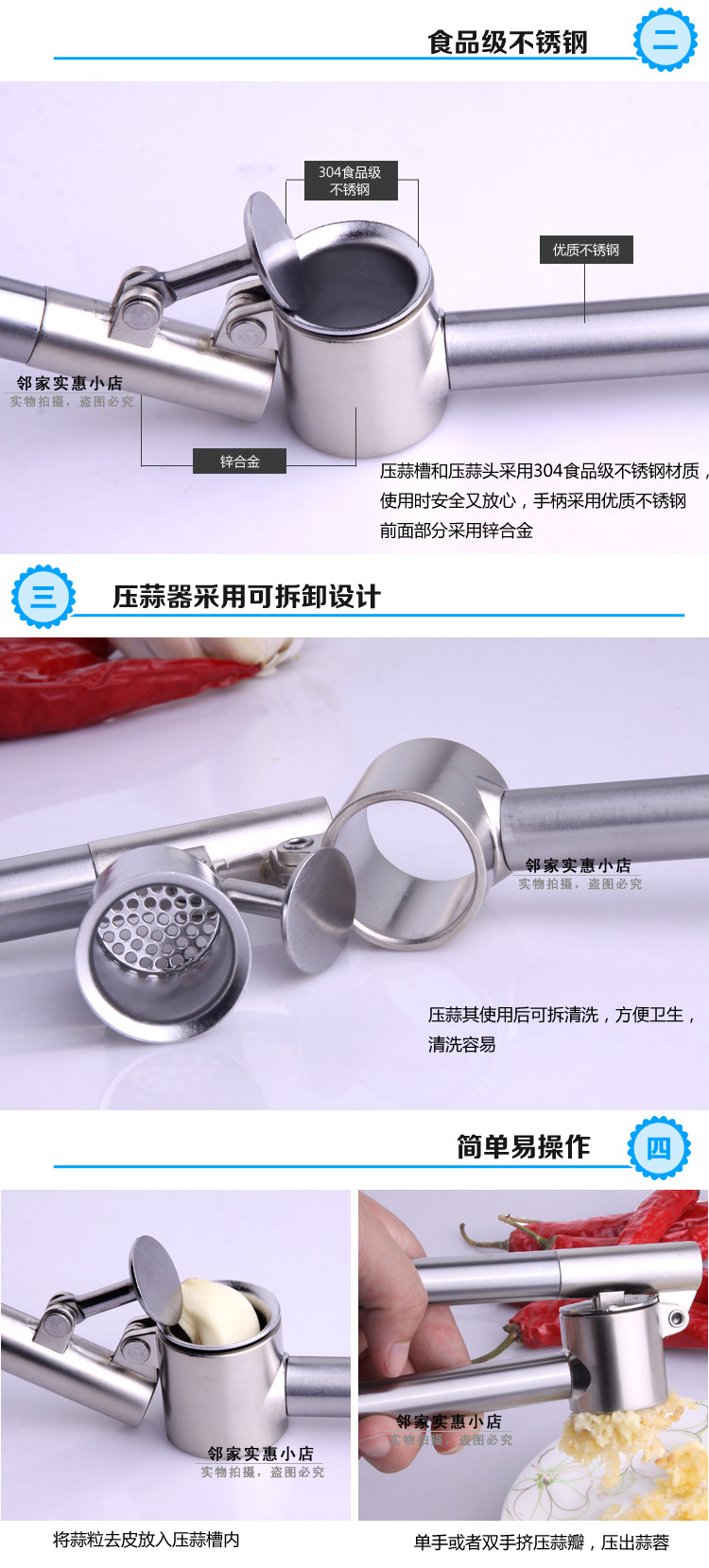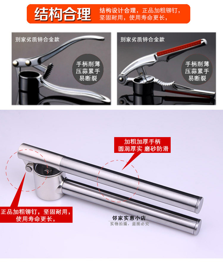 店家親自體驗了這款304不銹鋼壓蒜器,做蒜蓉非常好用,使用的時候請注意要