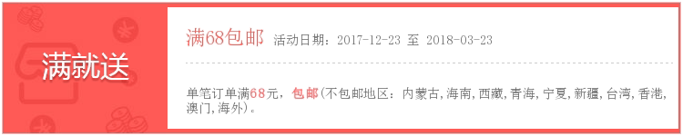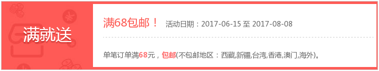 本店全部寶貝滿68元包郵!如有一件寶貝包郵,那么其它所有寶貝都包郵!(西藏,新疆,海南除外)