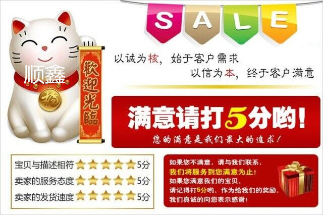 本店所有產品均為100%實物拍攝,但在不同光線下拍攝和不同的顯示器色差在所難免,請以實物為準我們將盡量將色差控制在最小范圍,完全不能接受色差者請慎重購買,對圖片有疑問請咨詢客服。