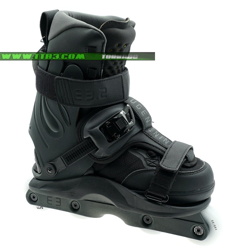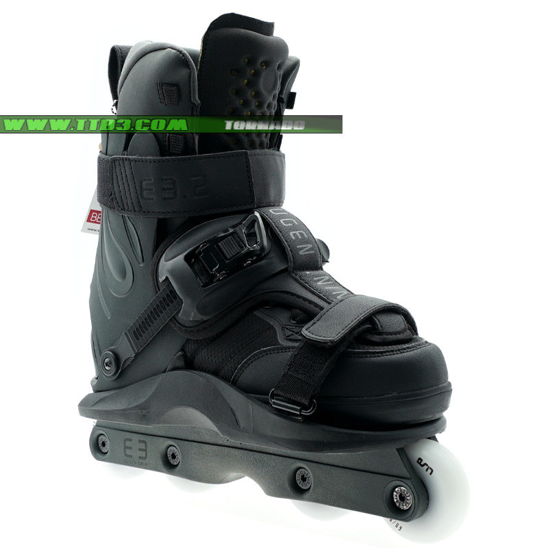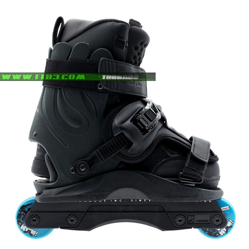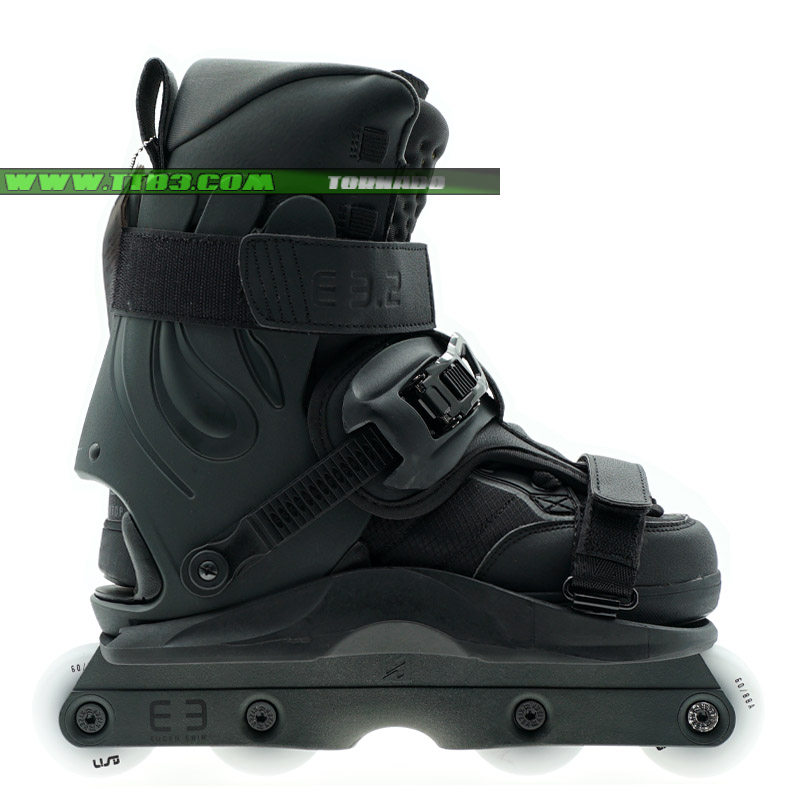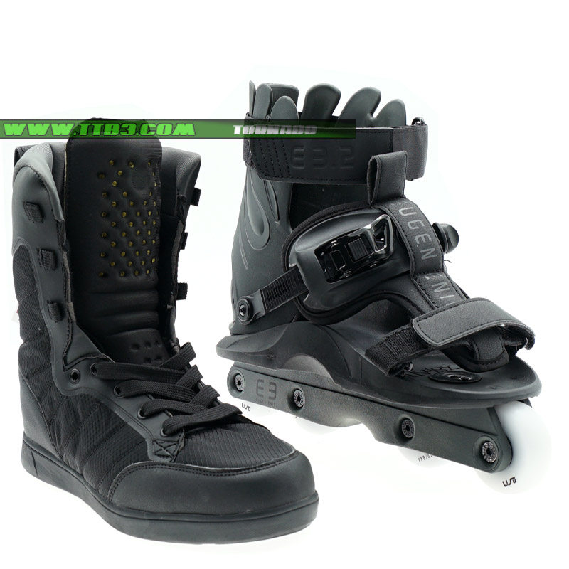 這是一個新的USD Shadow款式,它延續了XSJADO的設計風格,經過了進一步的改進,全新的鎖緊系統讓腳部更加舒適,特別是增加了高達2厘米厚的硅膠材質鞋舌,寬大的底板在卡位時幾乎像作弊一樣容易,下鞋選用了流行的四輪刀架配置,提高了通過性,街面滑鞋更加適合,內鞋部分是一雙舒適感非常好的黑色平底長靴,全黑色的配色,加上它獨特的造型,讓滑鞋在腳下非常酷炫