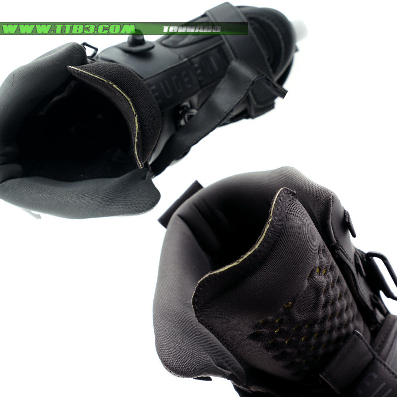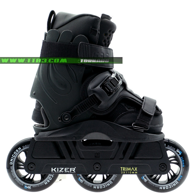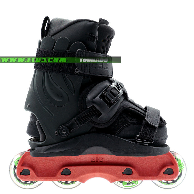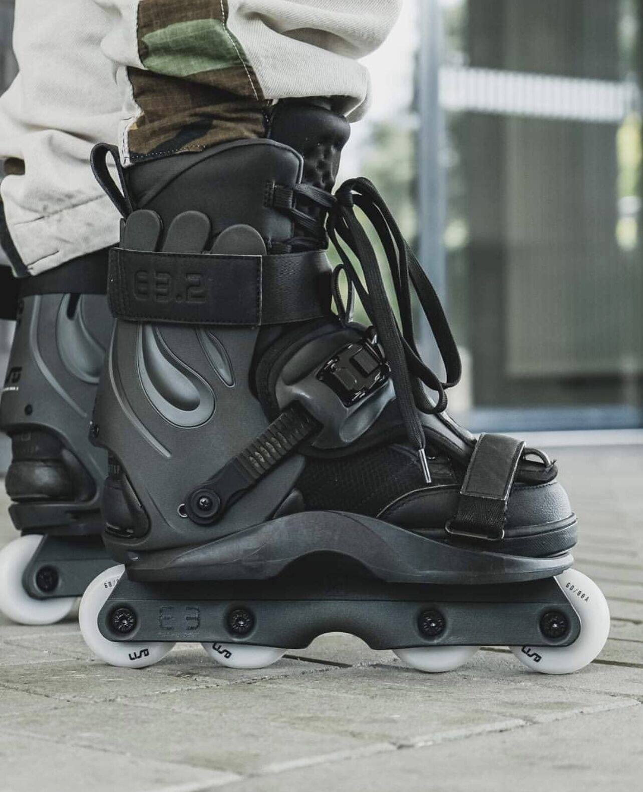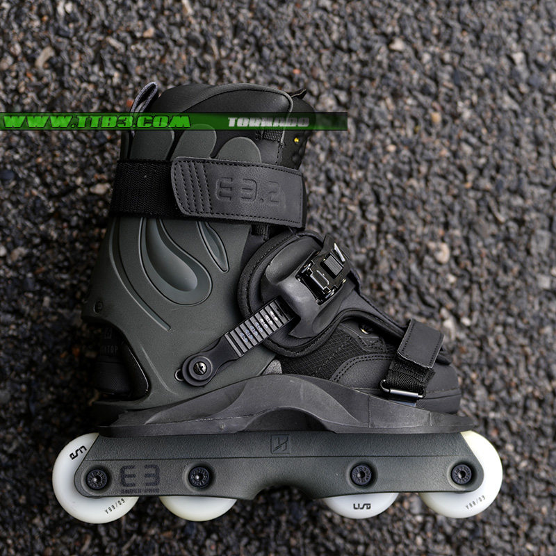 這是一個新的USD Shadow款式,它延續了XSJADO的設計風格,經過了進一步的改進,全新的鎖緊系統讓腳部更加舒適,特別是增加了高達2厘米厚的硅膠材質鞋舌,寬大的底板在卡位時幾乎像作弊一樣容易,下鞋選用了流行的四輪刀架配置,提高了通過性,街面滑鞋更加適合,內鞋部分是一雙舒適感非常好的黑色平底長靴,全黑色的配色,加上它獨特的造型,讓滑鞋在腳下非常酷炫