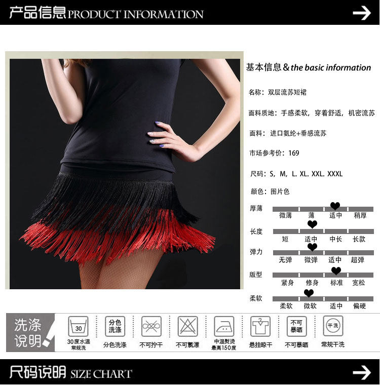 黑+大紅色雙層流蘇短裙