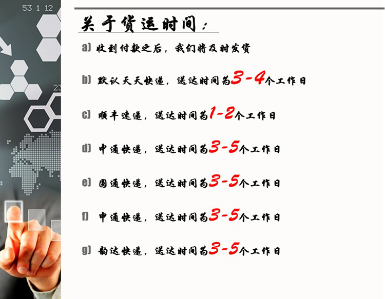 訂單付款完成後,商品將於完成付款後翌日起算10至25個工作天內送達台灣本島,不包含海關查驗或其他不可抗力因素影響的延誤。本店不提供急件配送服務,無法因此要求取消訂單。 - 運費政策與額外收費