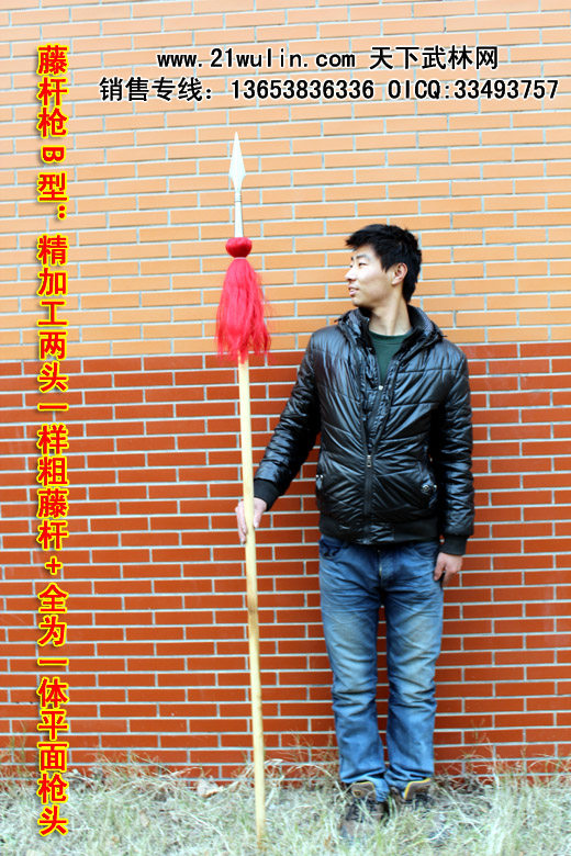 【名稱】:藤桿槍B型:精加工兩頭一樣粗藤桿+全為一體平面槍頭
