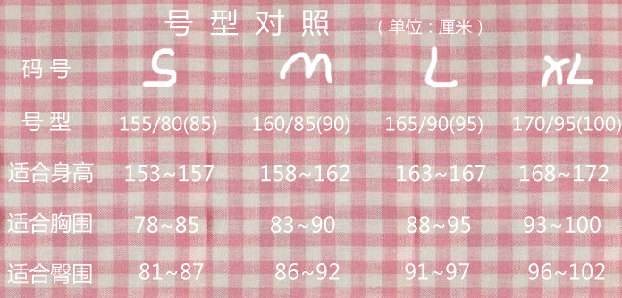 尺碼對照表僅作為選擇參考,購買前請咨詢客服,再自行決定所需尺碼。