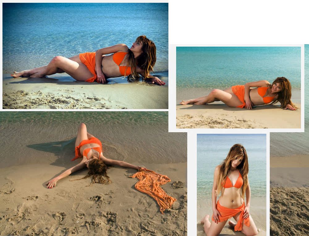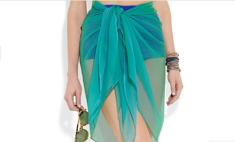 翡翠綠色天絲絲巾配*搭熒光橙色Bikini