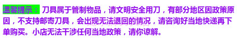 (注意:刀具屬于管制品,請文明用刀,有部分地區因政策原因,不支持郵寄刀具,有部分親親購買了刀具不喜歡想退貨會出現無法退回的情況,請咨詢好當地快遞再下單購買,小店無法干涉任何當地政策,請你諒解。)