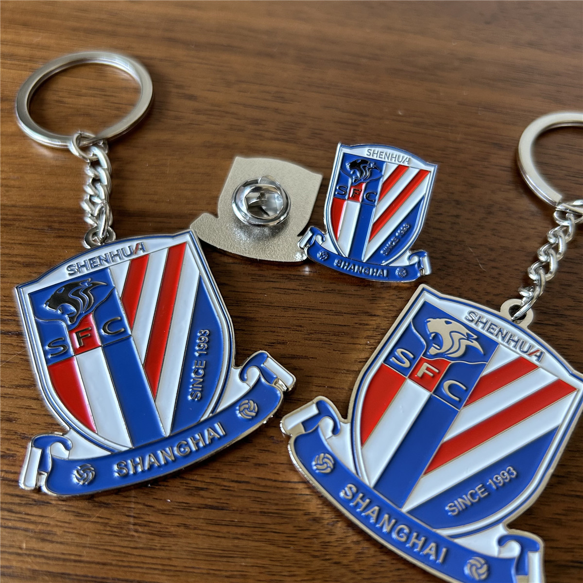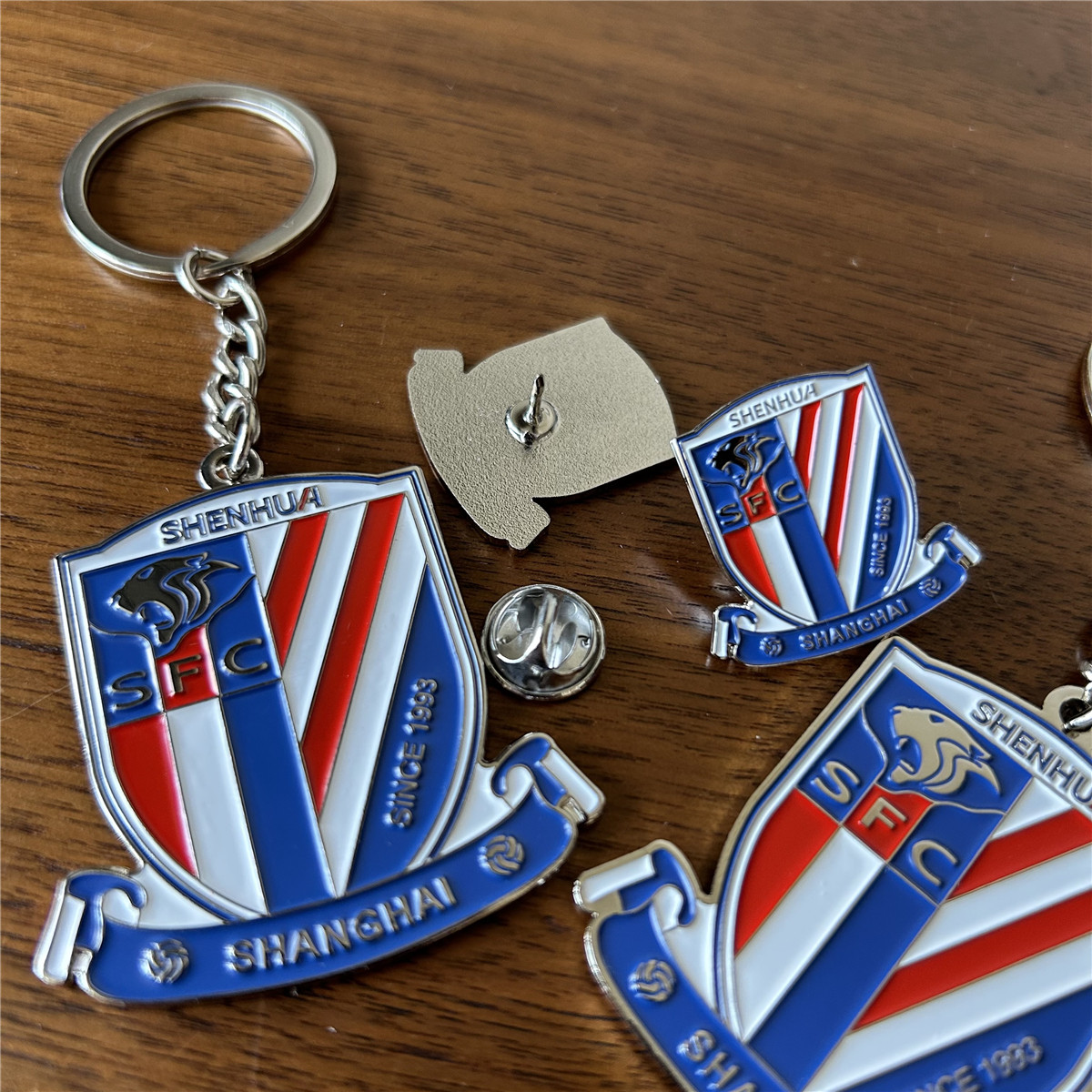 中超上海申花球迷隊徽款鑰匙扣,徽章,胸針,也可以當作掛飾掛在包包上。