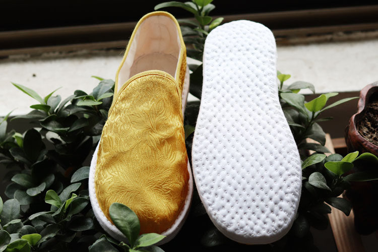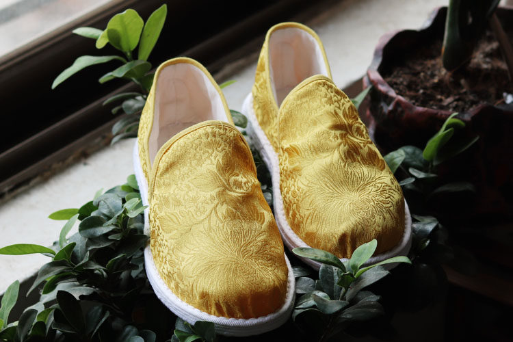 純新品千層底布鞋女男 純手工農家納底 金黃錦緞刺繡民族風傳統手納老北京布鞋