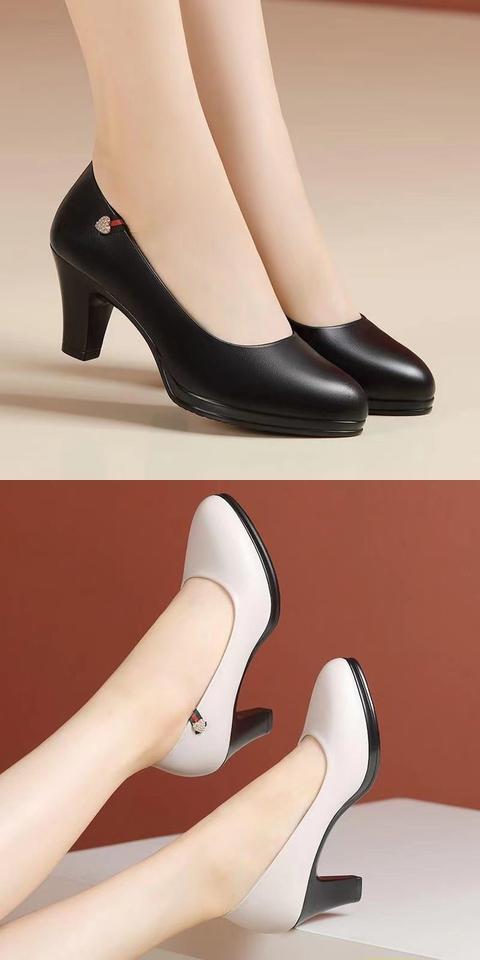 2023春季新款單鞋女鞋淺口單鞋圓頭PU2023年夏季高跟(6-8cm)橡膠當季熱賣時尚百搭款,不要猶豫往下看圖片你馬上會愛上