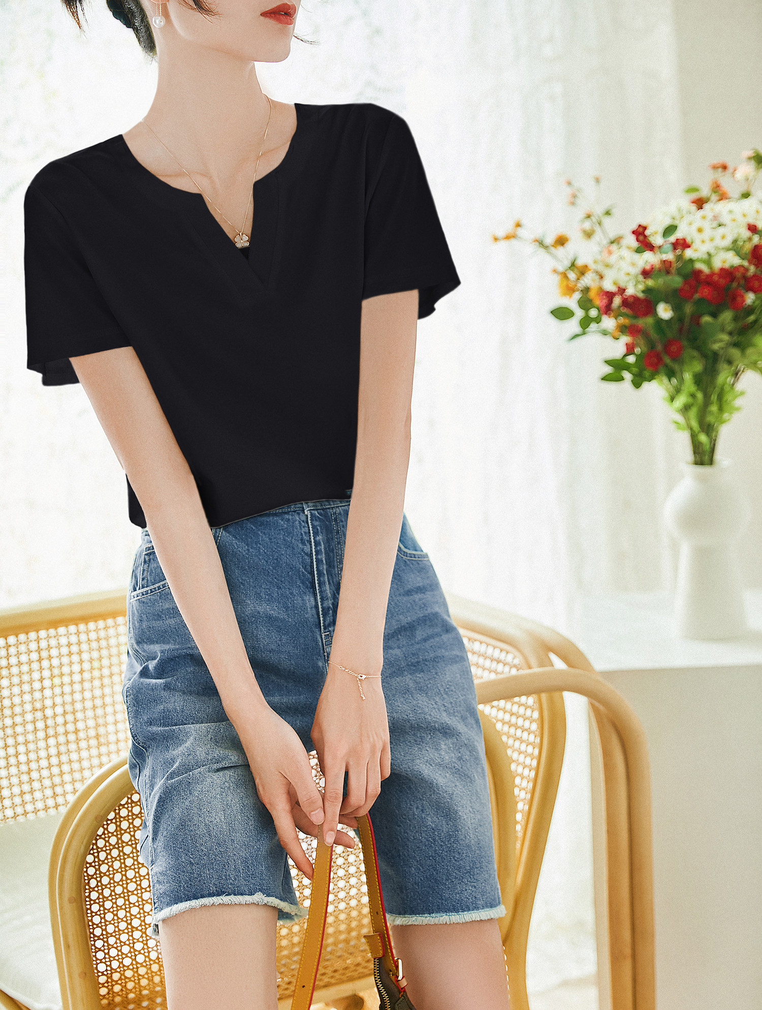 區別于一眾的圓領T,優雅+性感的都快溢出屏幕了!