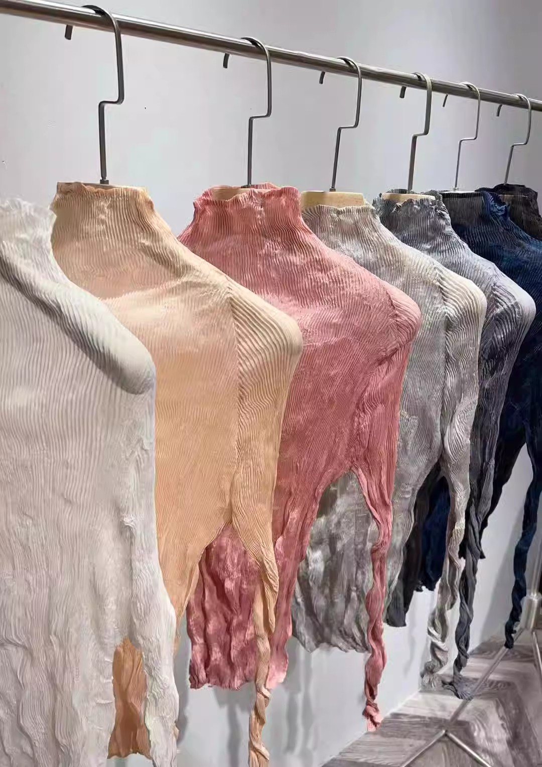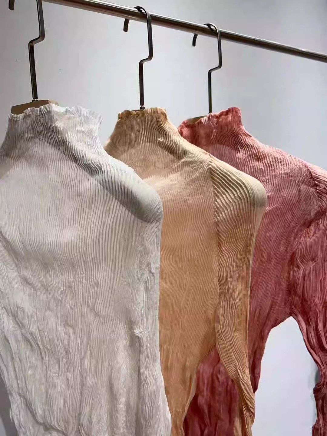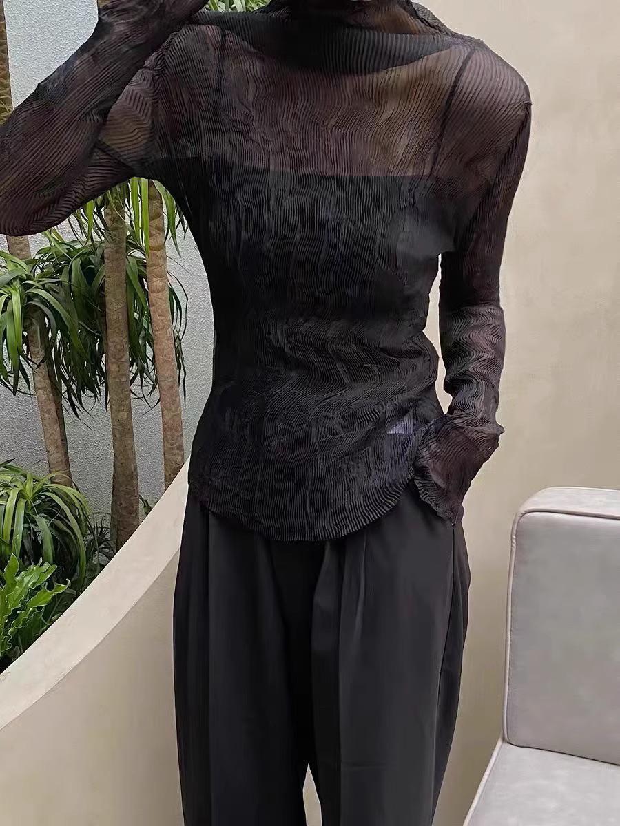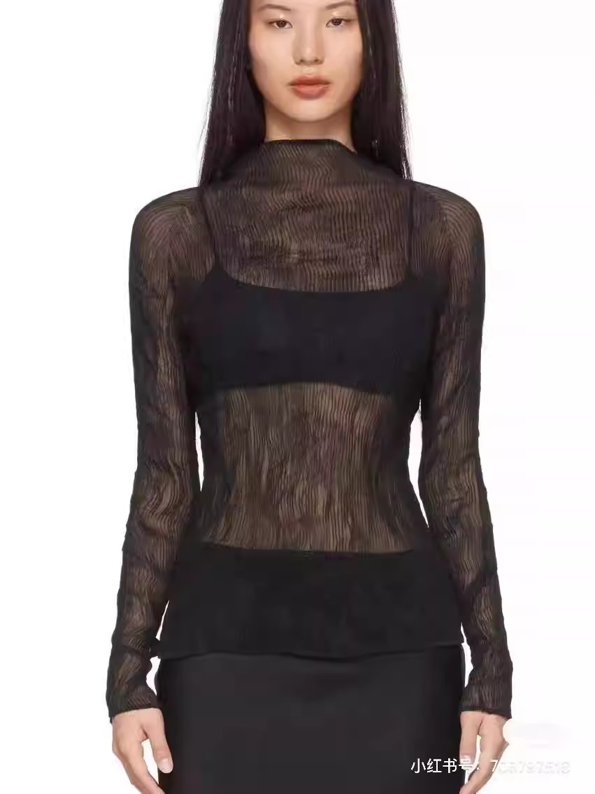 褶皺美學主線入門款神衣柳條褶皺透視打底衫