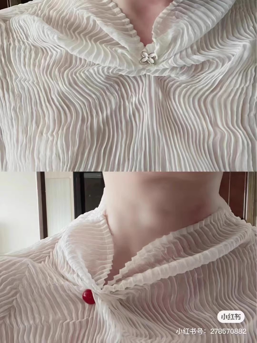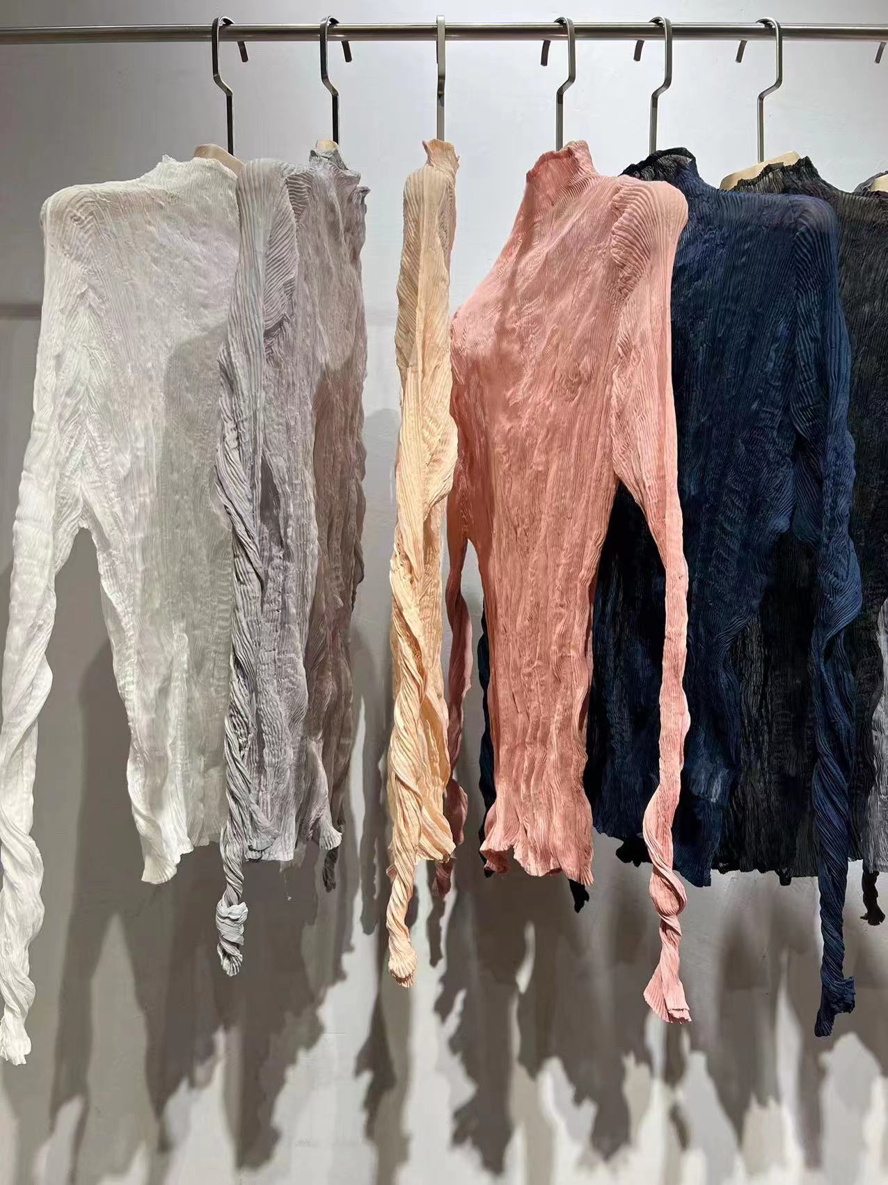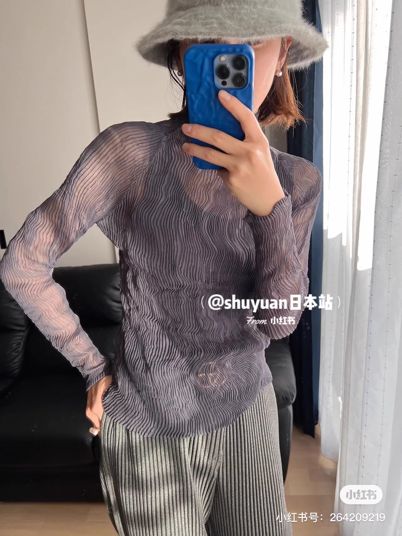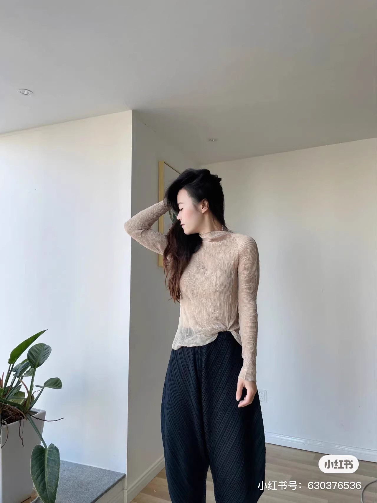 褶皺美學主線入門款神衣柳條褶皺透視打底衫
