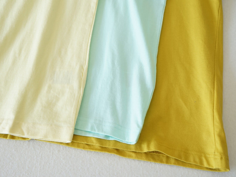 淺黃色和淺綠色的面料略薄一點,更涼爽