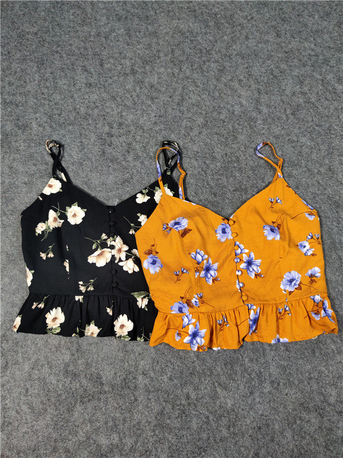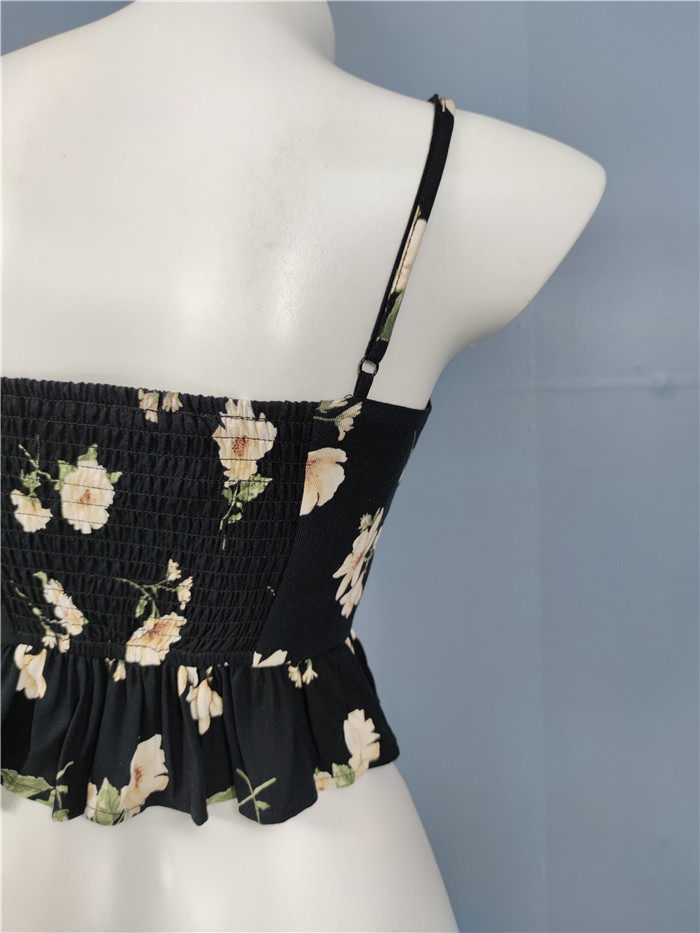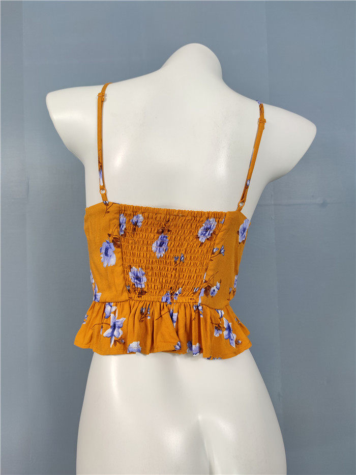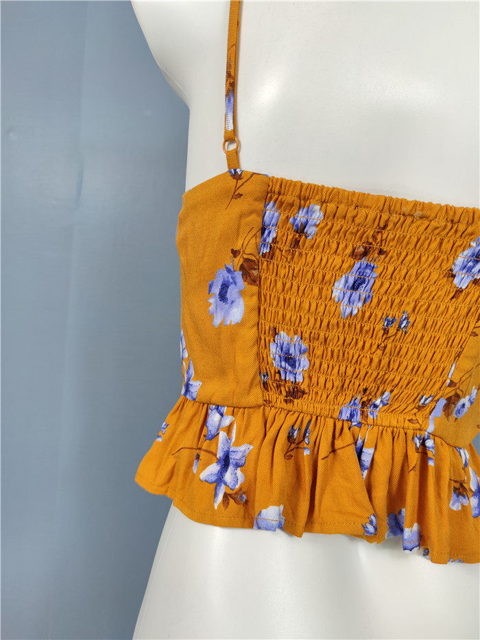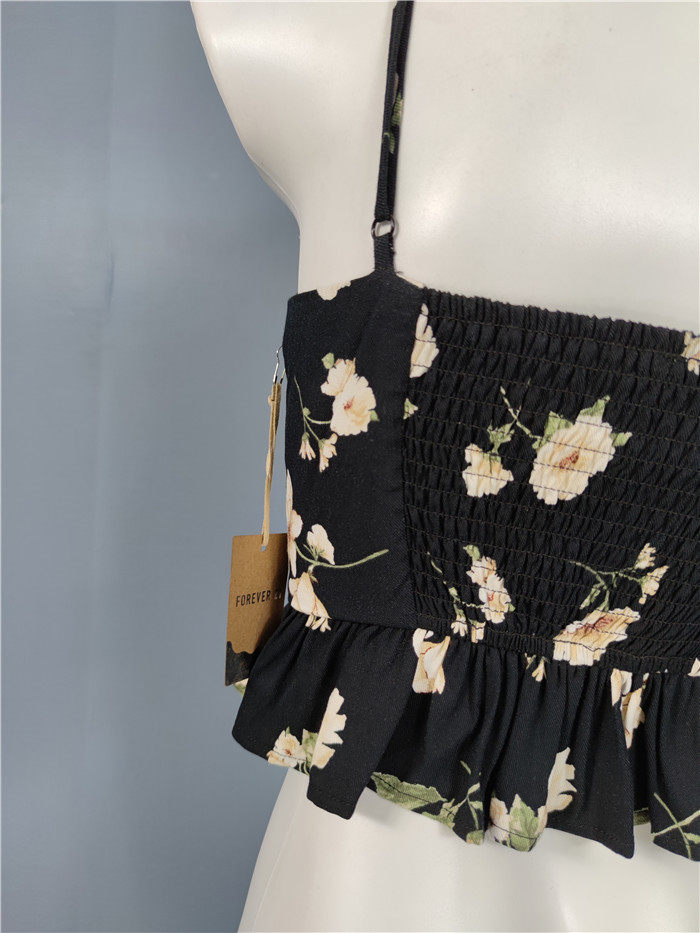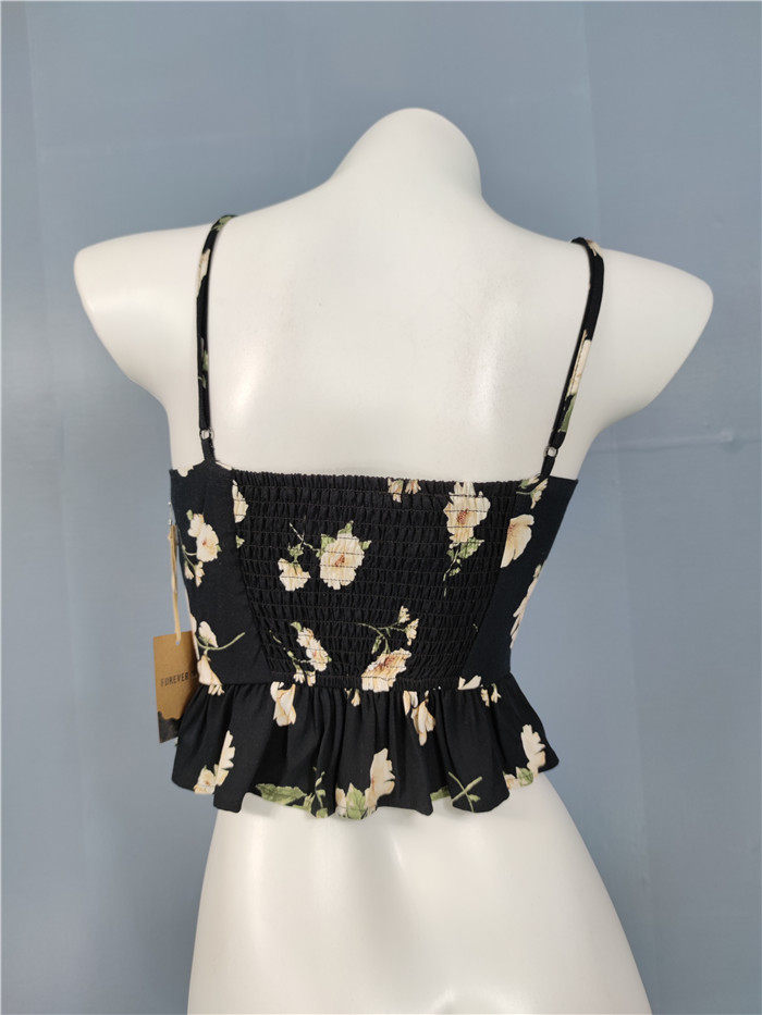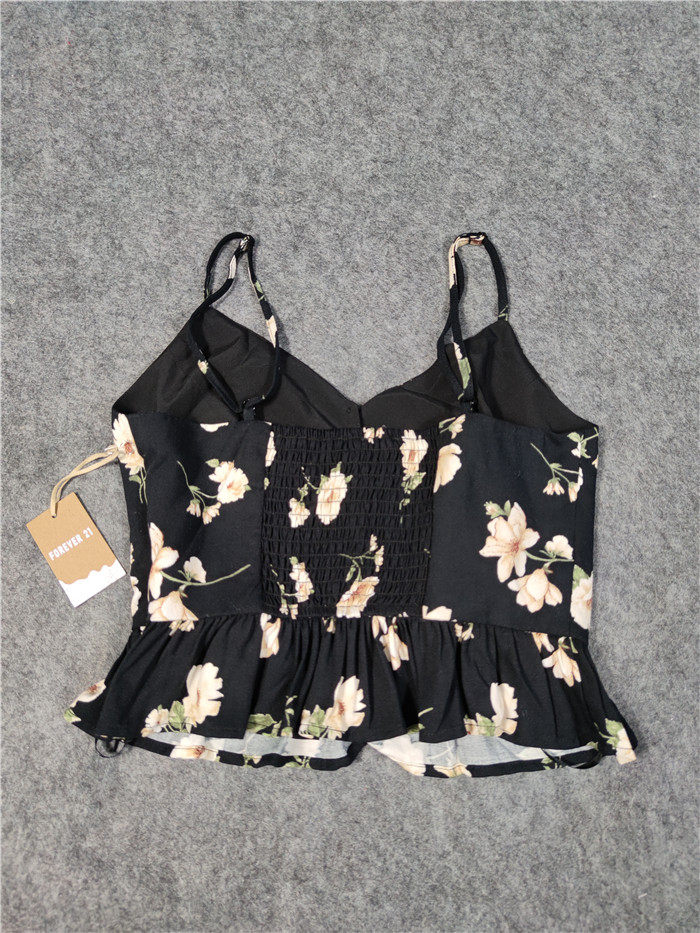 外貿單新款吊帶打底印花百搭個性露臍修身松緊帶可鹽可甜小上衣女