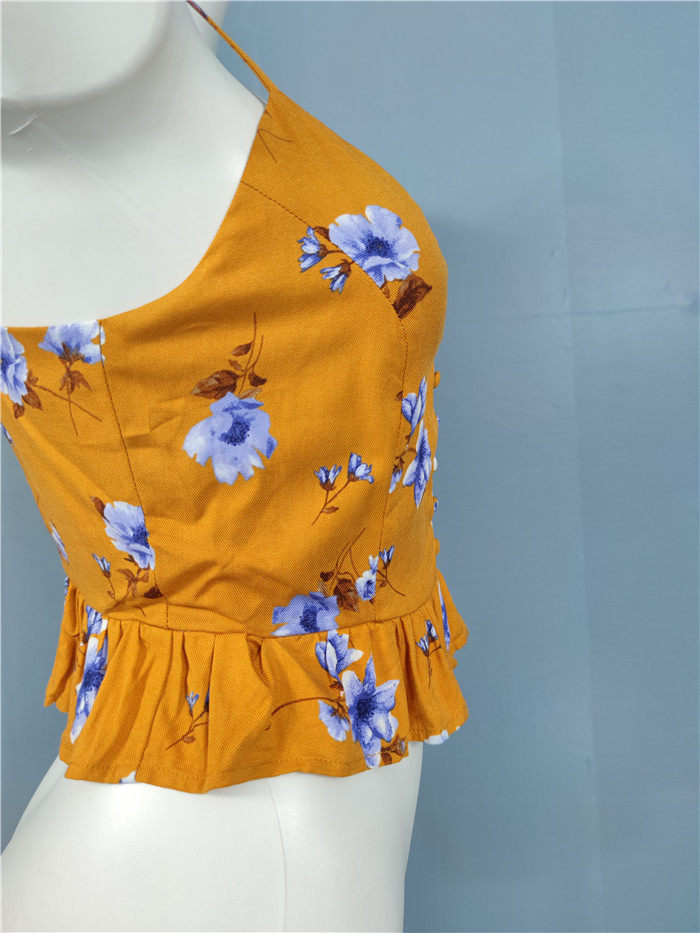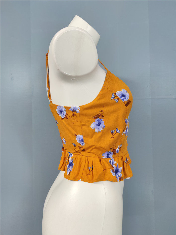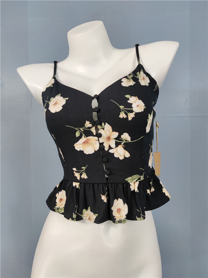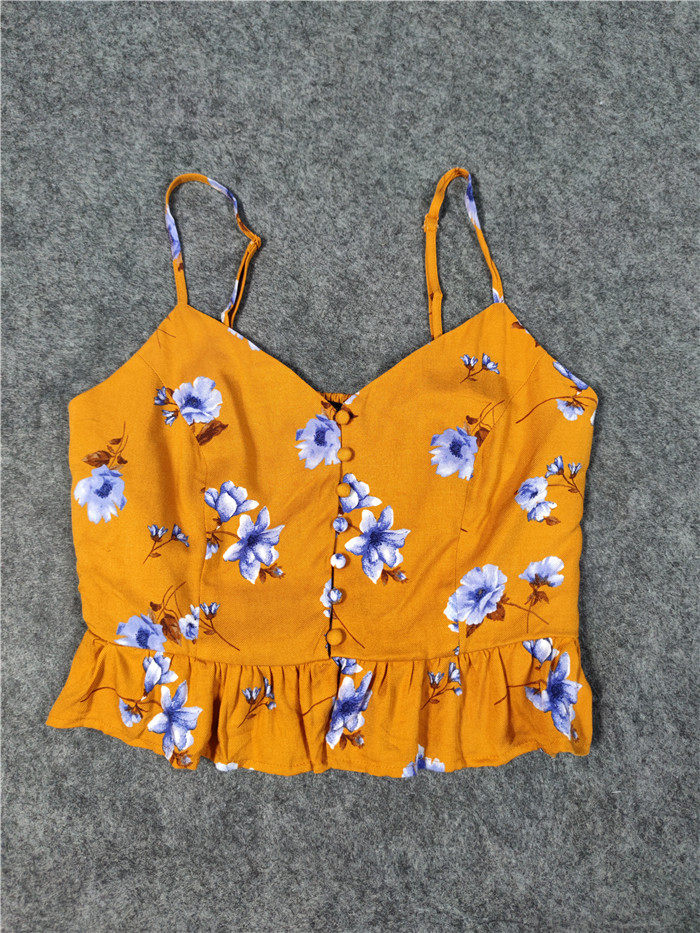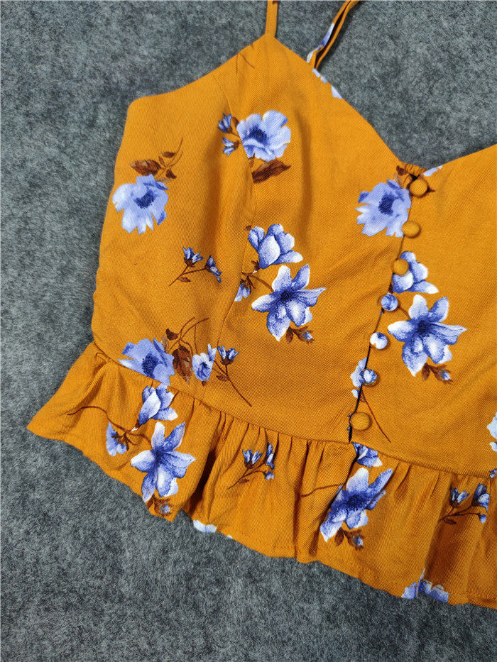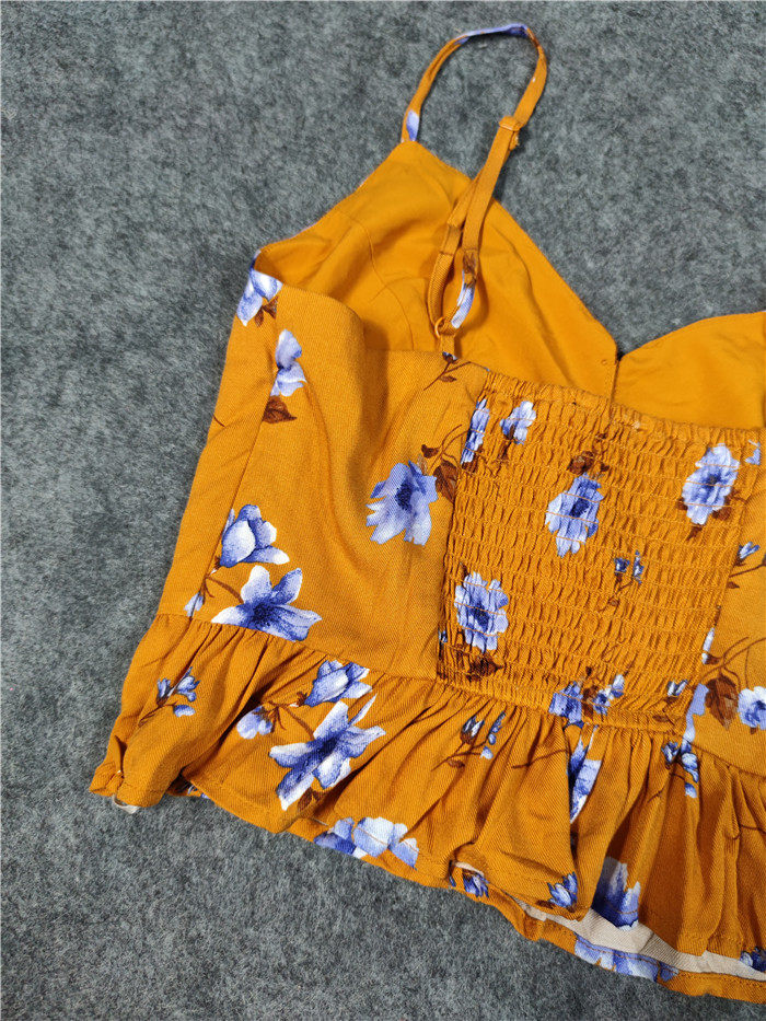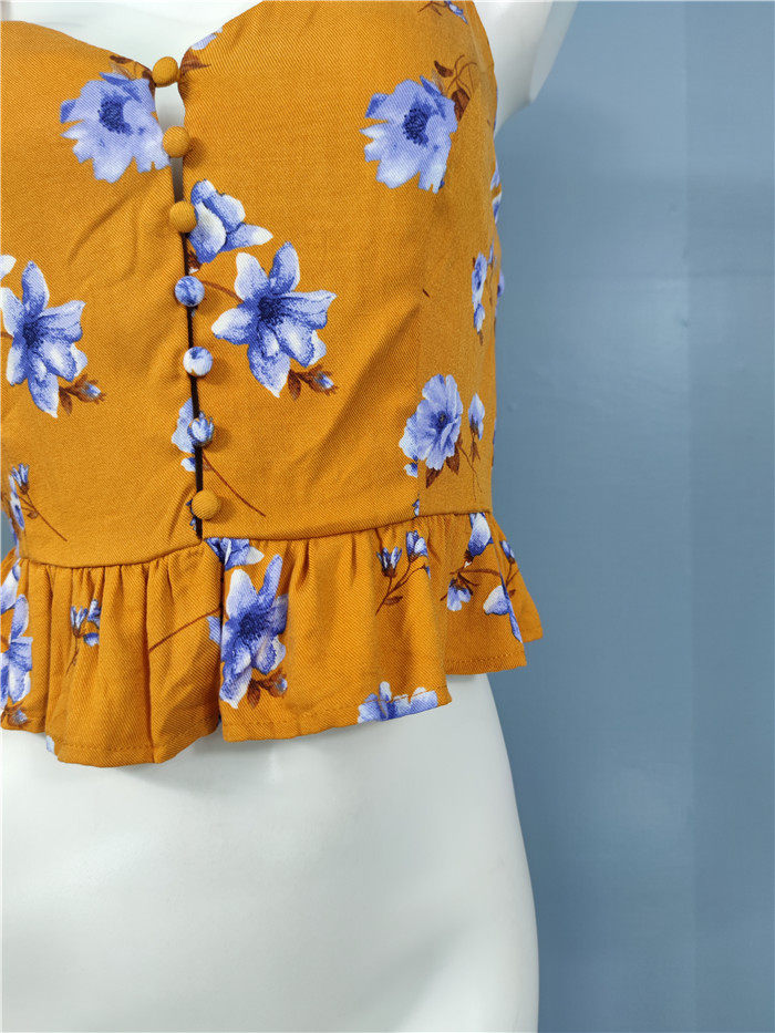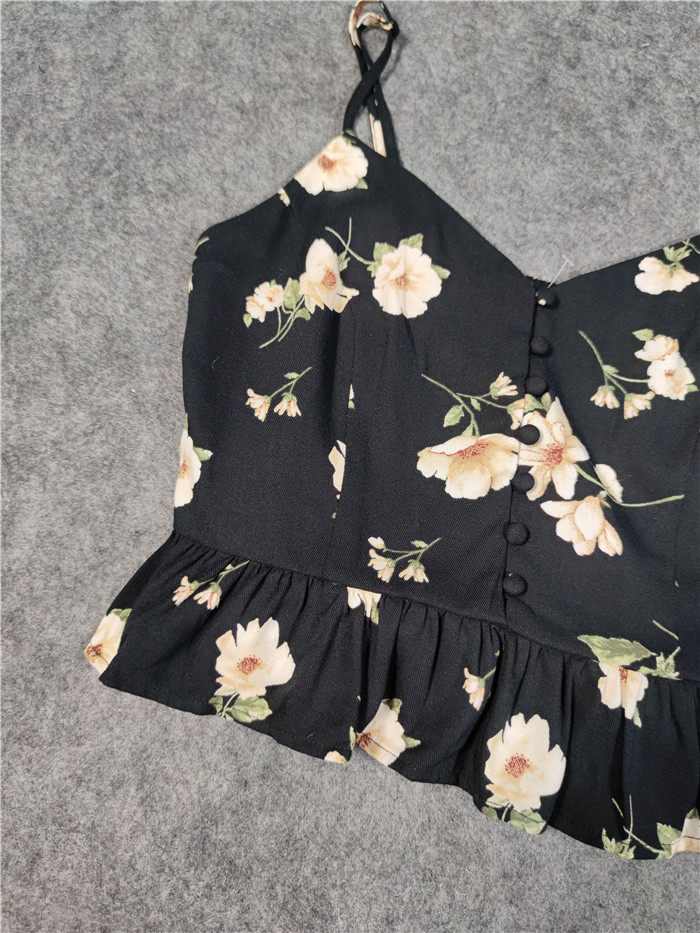 外貿單新款吊帶打底印花百搭個性露臍修身松緊帶可鹽可甜小上衣女