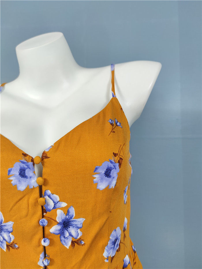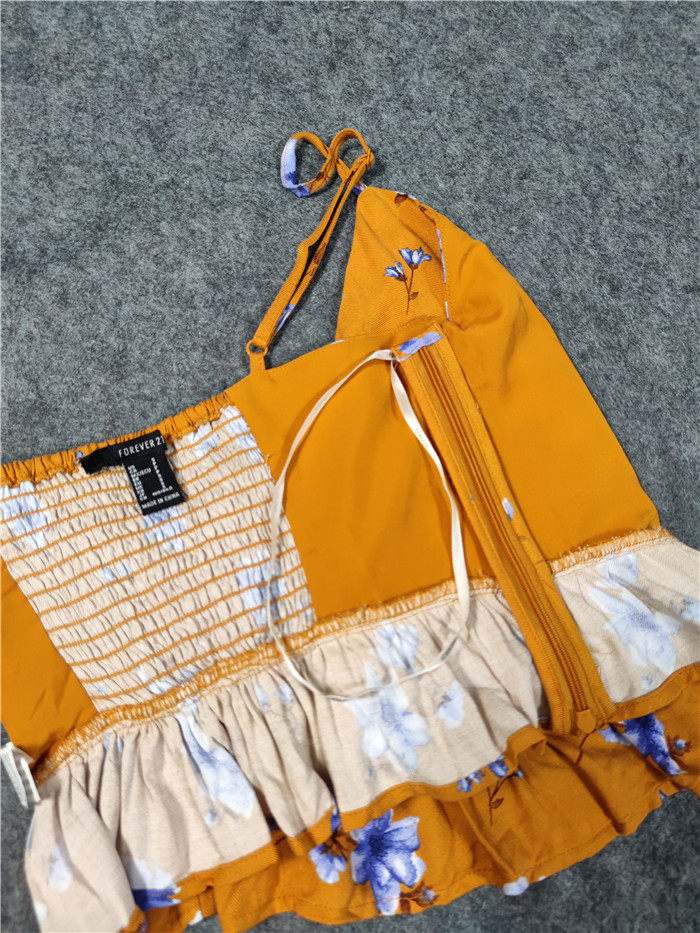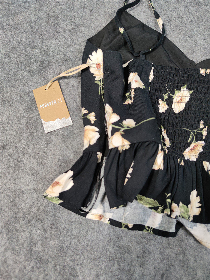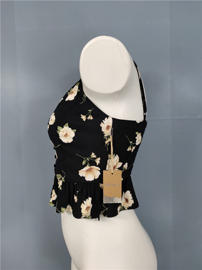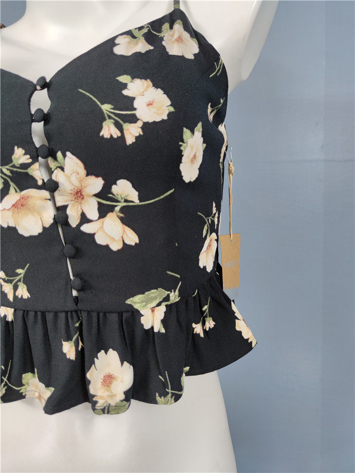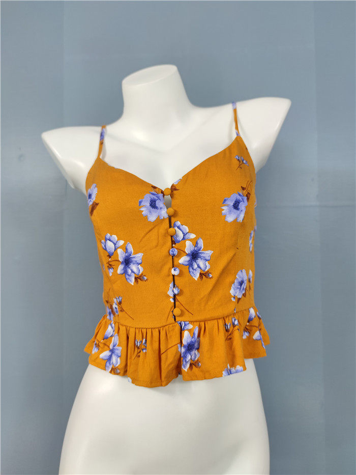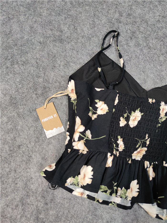 外貿單新款吊帶打底印花百搭個性露臍修身松緊帶可鹽可甜小上衣女