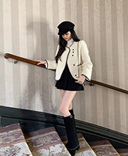 堆堆領針織小香兩件套雙面呢外套