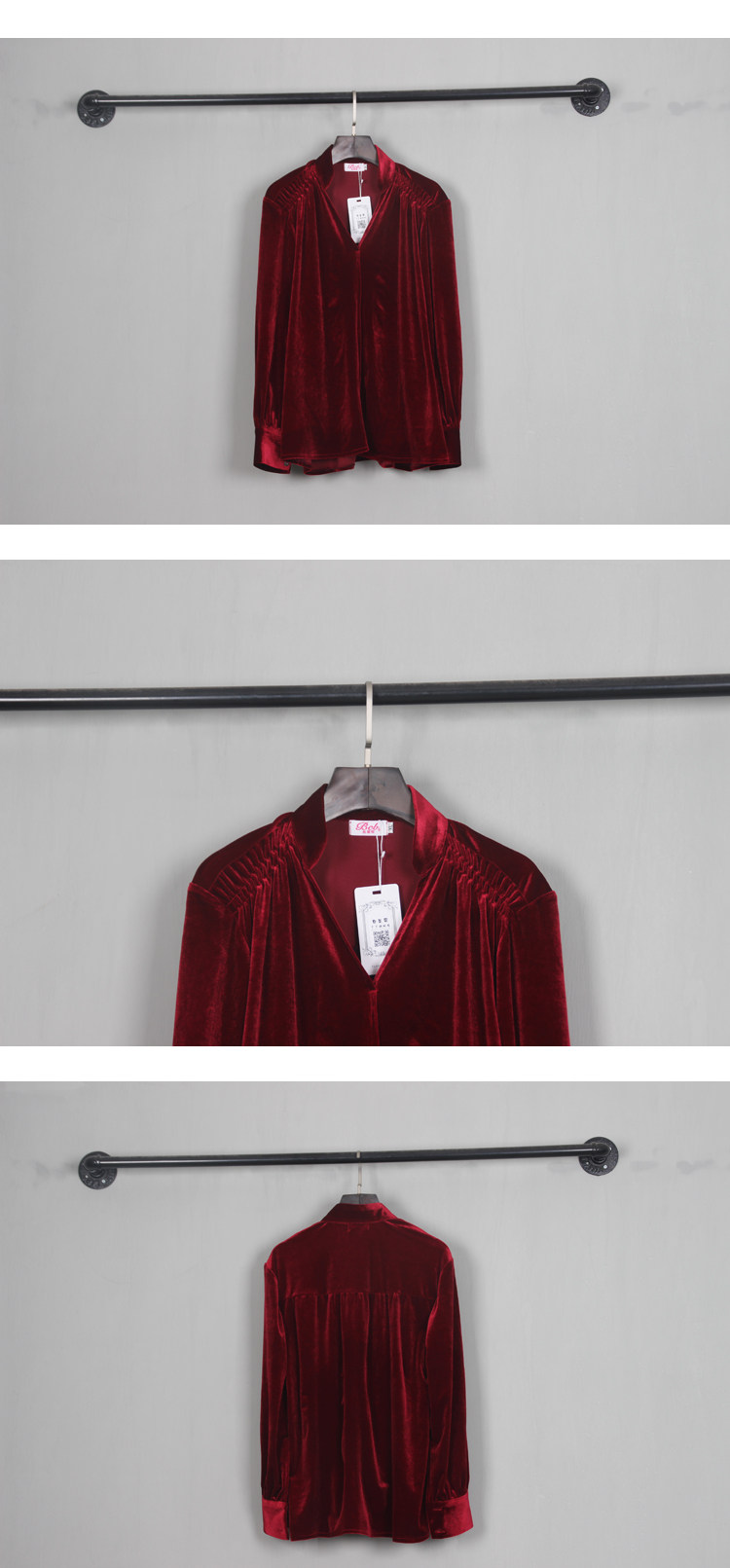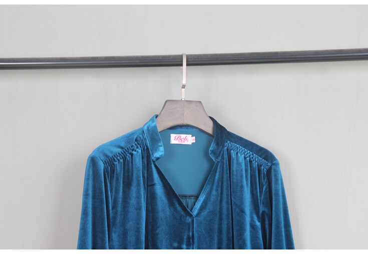 領口是 立式V領,拉長頸部的線條,更顯臉小。套頭款。